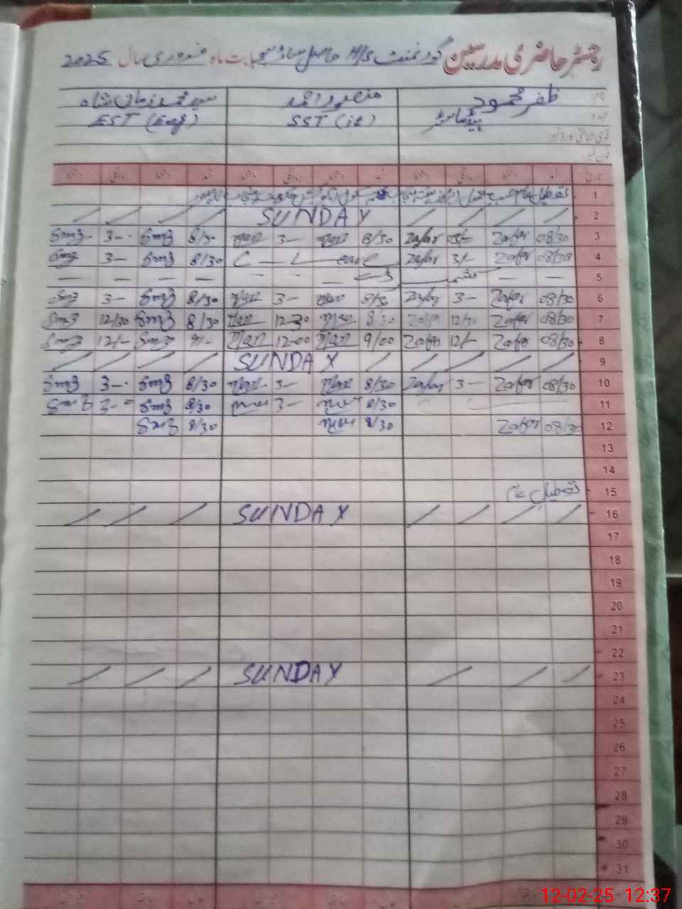 | CNIC | Full Name | Designation | R/C | Absence During Last Calender Month |