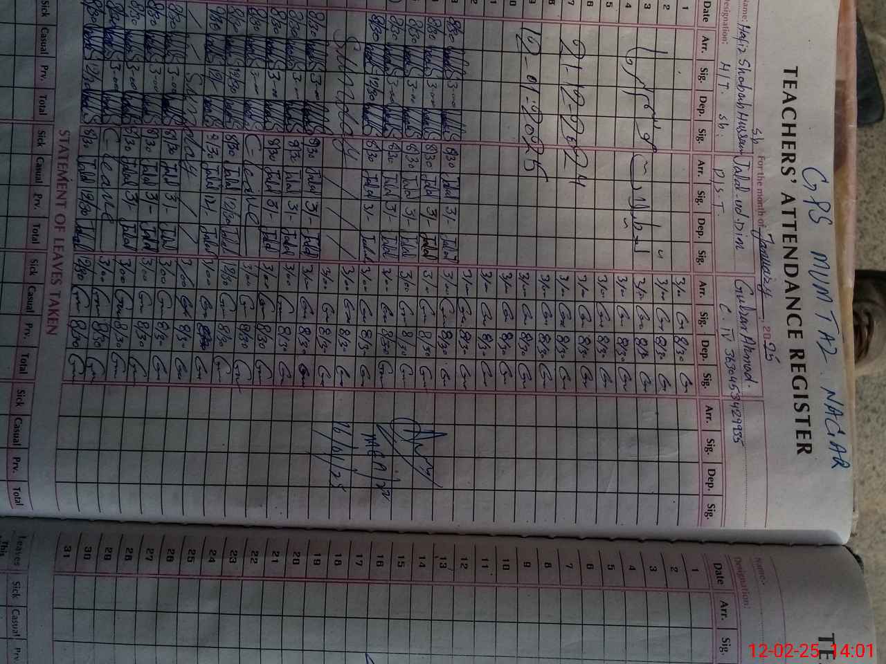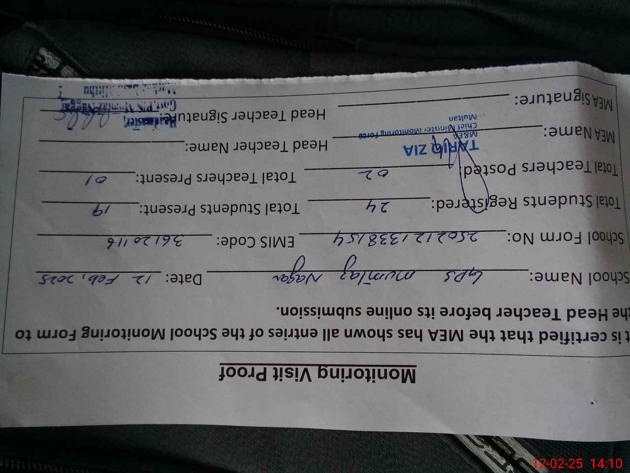 | Remarks (Use Separate Page if Required): 1st visit Teacher shown on leave however net on tab is not available so did not provided leave record NSB record provided UpTo 09 Dec 2024 | |||||