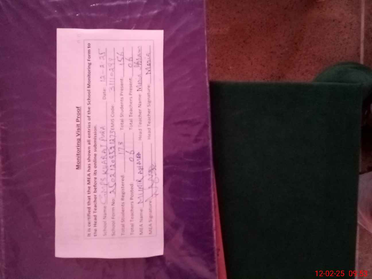 | EMIS Code: 31110299 | Name of School: GMPS KHARAJ PURA | |||