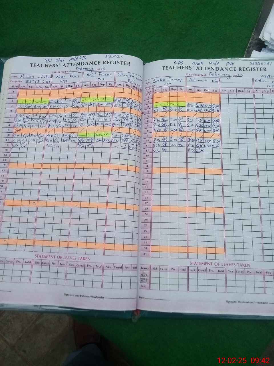 | Attendance Register | Head Teacher | MEA with School | Visit Proof |