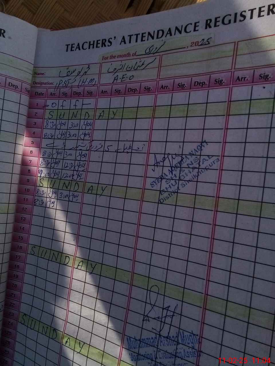 | CNIC | Full Name | Designation | R/C | Absence During Last Calender Month |