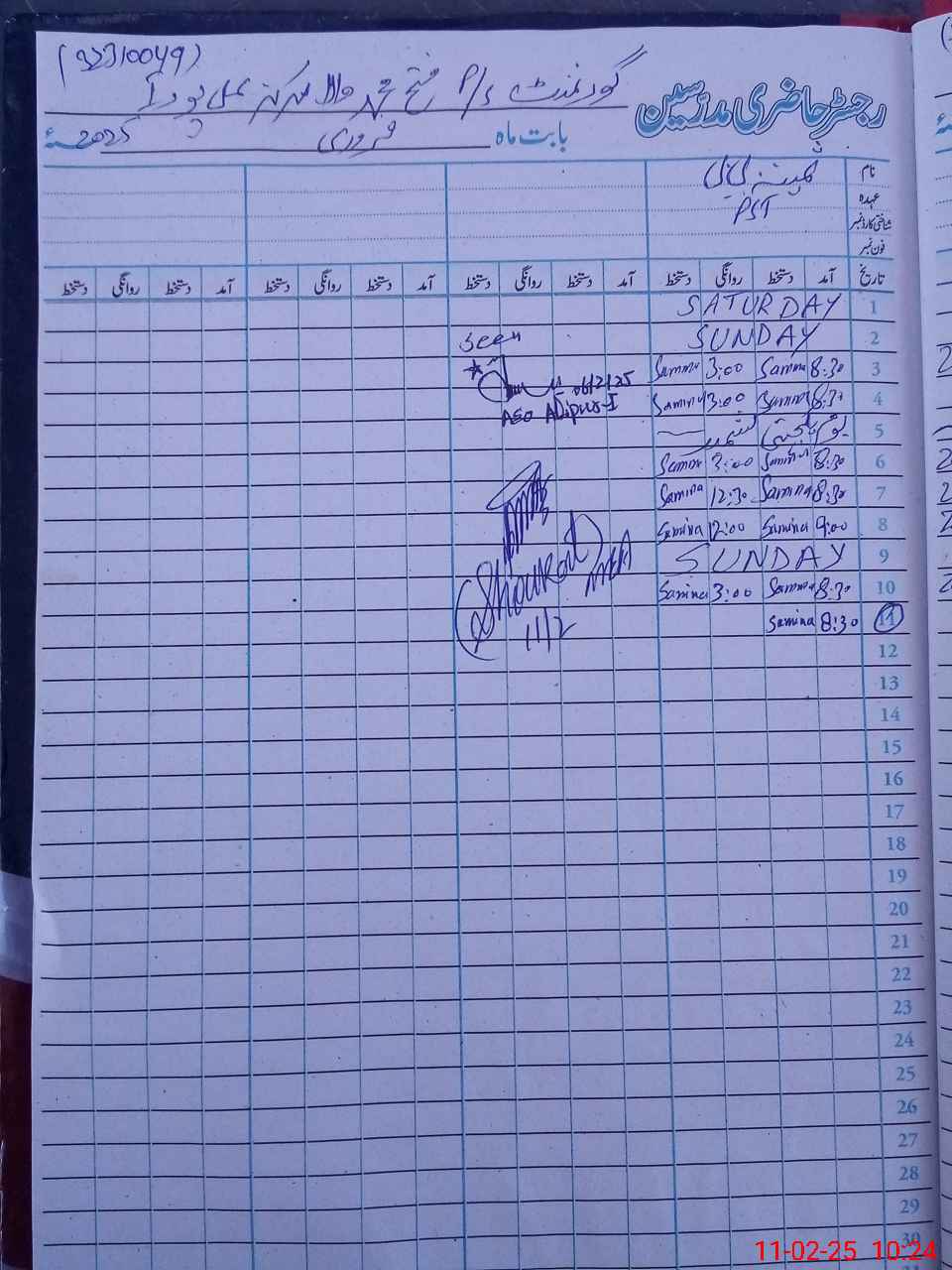 | CNIC | Full Name | Designation | R/C | Absence During Last Calender Month |