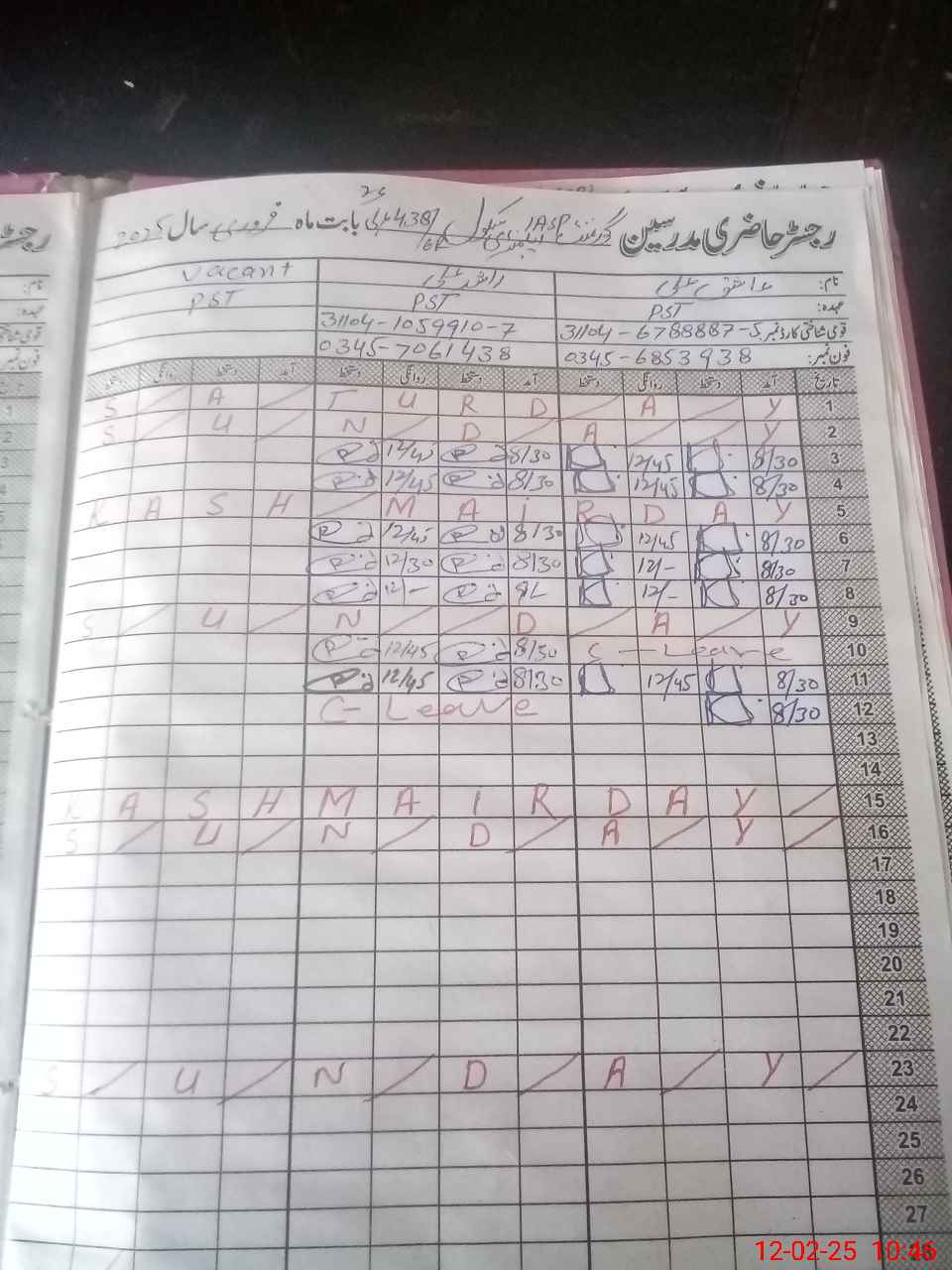 | 31**** | Ra**** Al**** | PST | Regular | 0 | 0 | 0 | 0 | 0 | 0 | 0 | 0 | 0 | Casual |