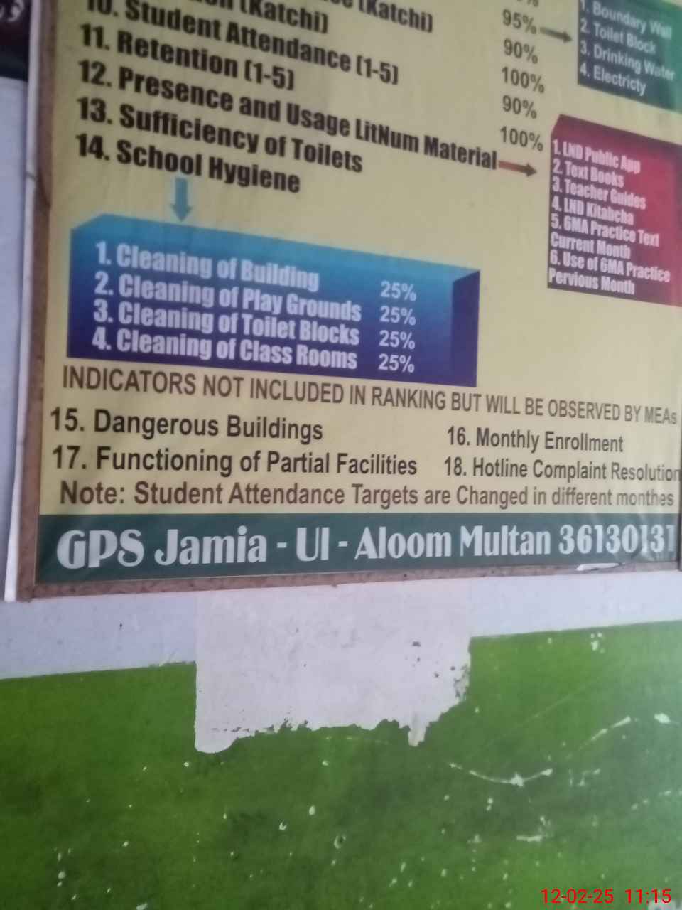 | EMIS Code: 36130131 | Name of School: GPS JAMI UL ALOOM DOULAT GATE MULTAN | |||