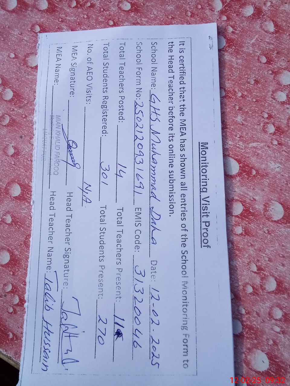 | EMIS Code: 31320046 | Name of School: GHS MUHAMMAD DAHA | |||