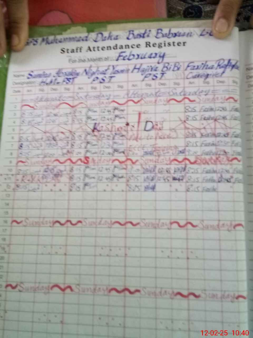 | CNIC | Full Name | Designation | R/C | Absence During Last Calender Month |