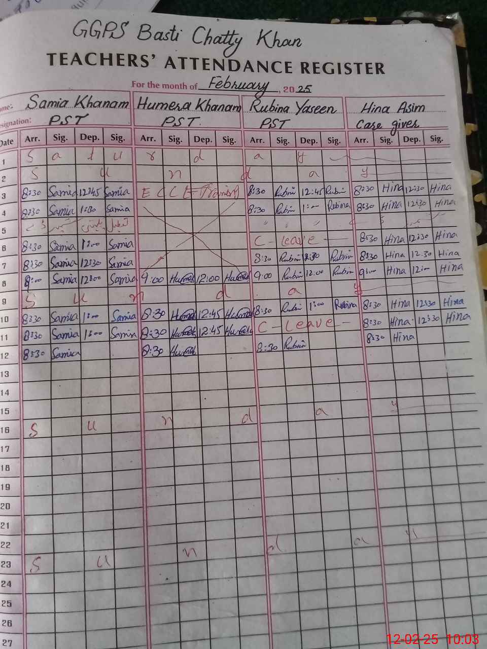| Name: SA**** KH**** Designation: (School Headmaster's/Headmistress's) PST Phone/Cell Number: 03**** |