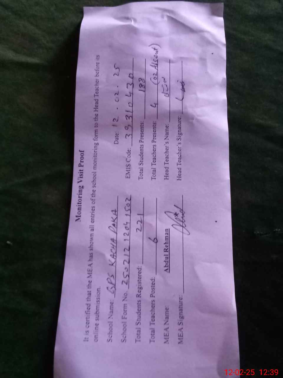 | EMIS Code: 39310430 | Name of School: GPS KACHA PAKA | |||