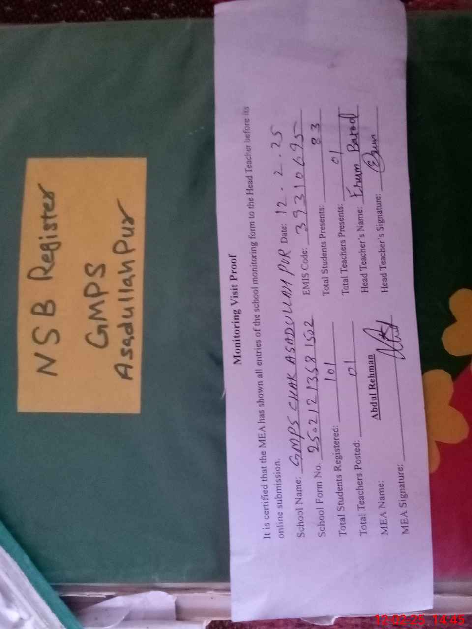 | EMIS Code: 39310695 | Name of School: GMPS CHAK ASAD ULLAH PUR | |||