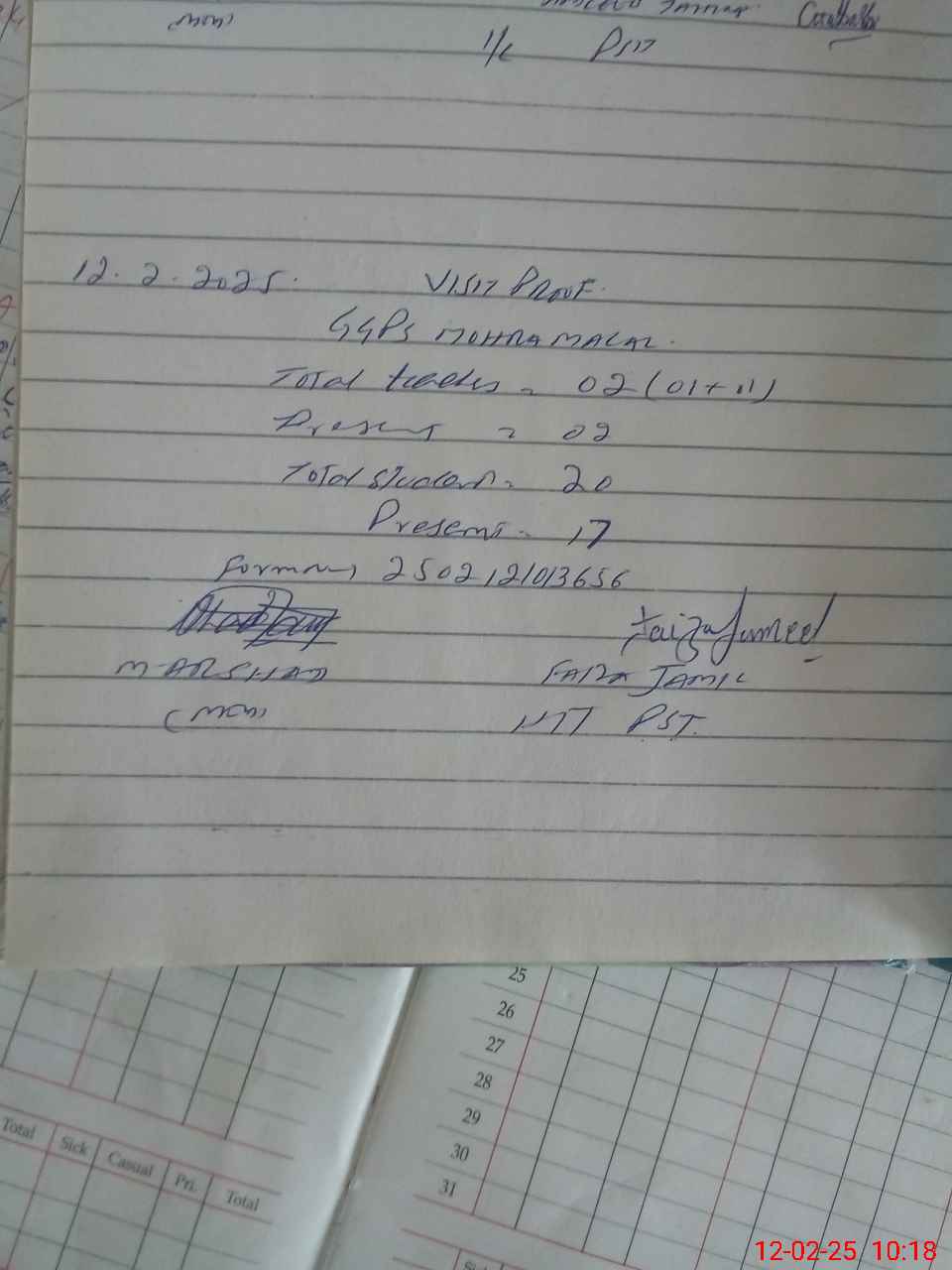 | EMIS Code: 37350121 | Name of School: GGPS MOHRA MALAL | |||