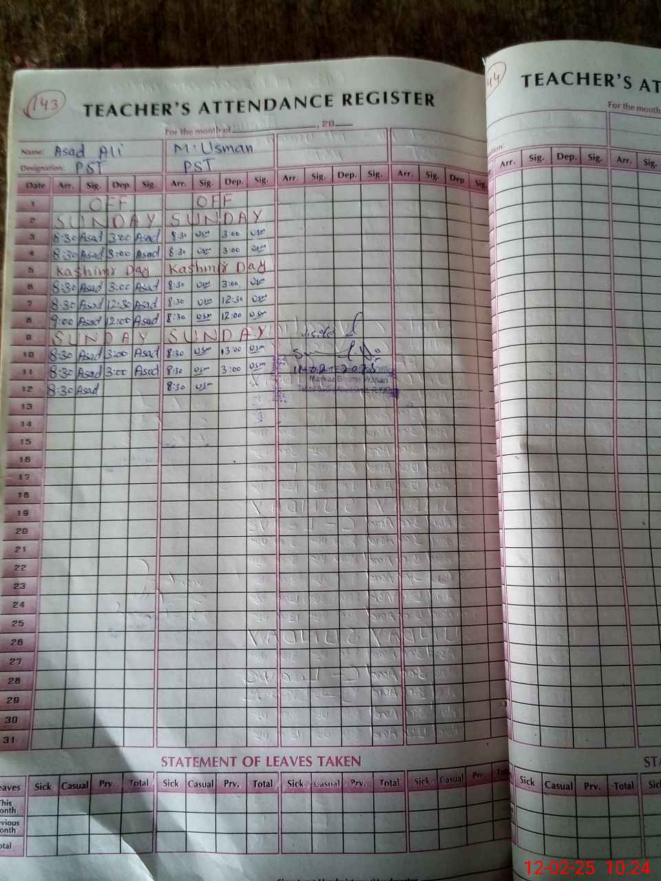 | Name: As**** Al**** Designation: (School Headmaster's/Headmistress's) PST Phone/Cell Number: 03**** |