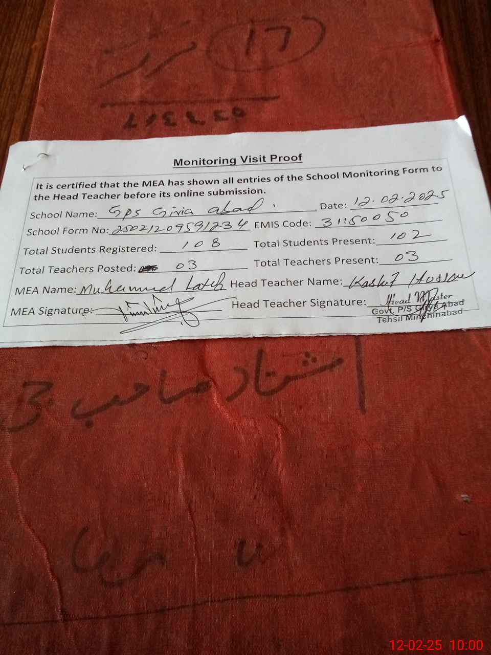 | EMIS Code: 31150050 | Name of School: GPS GIRIA ABAD | |||