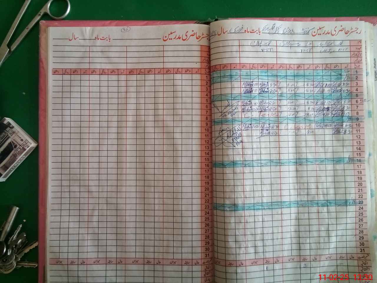 | CNIC | Full Name | Designation | R/C | Absence During Last Calender Month |