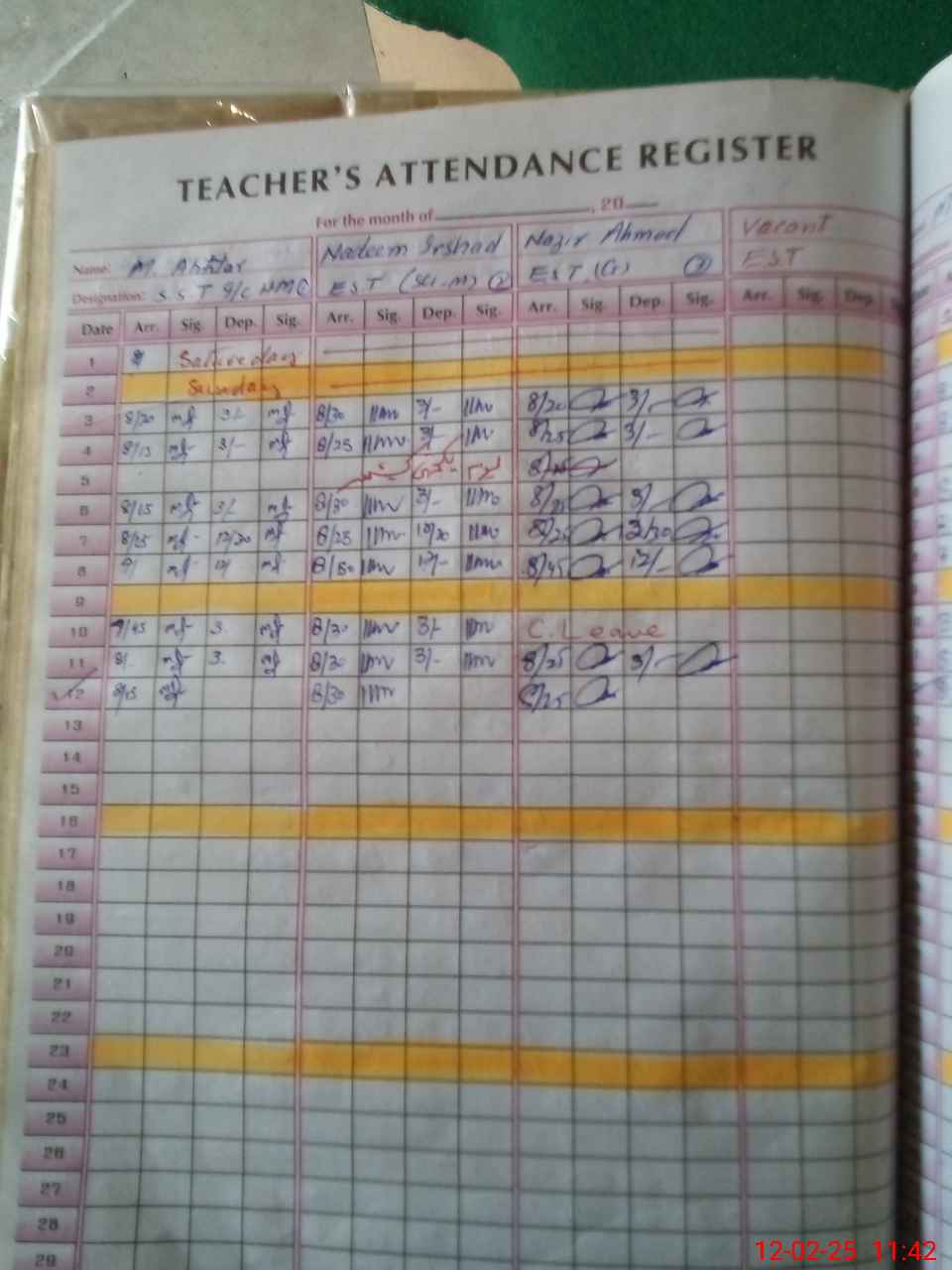 | CNIC | Full Name | Designation | R/C | Absence During Last Calender Month |