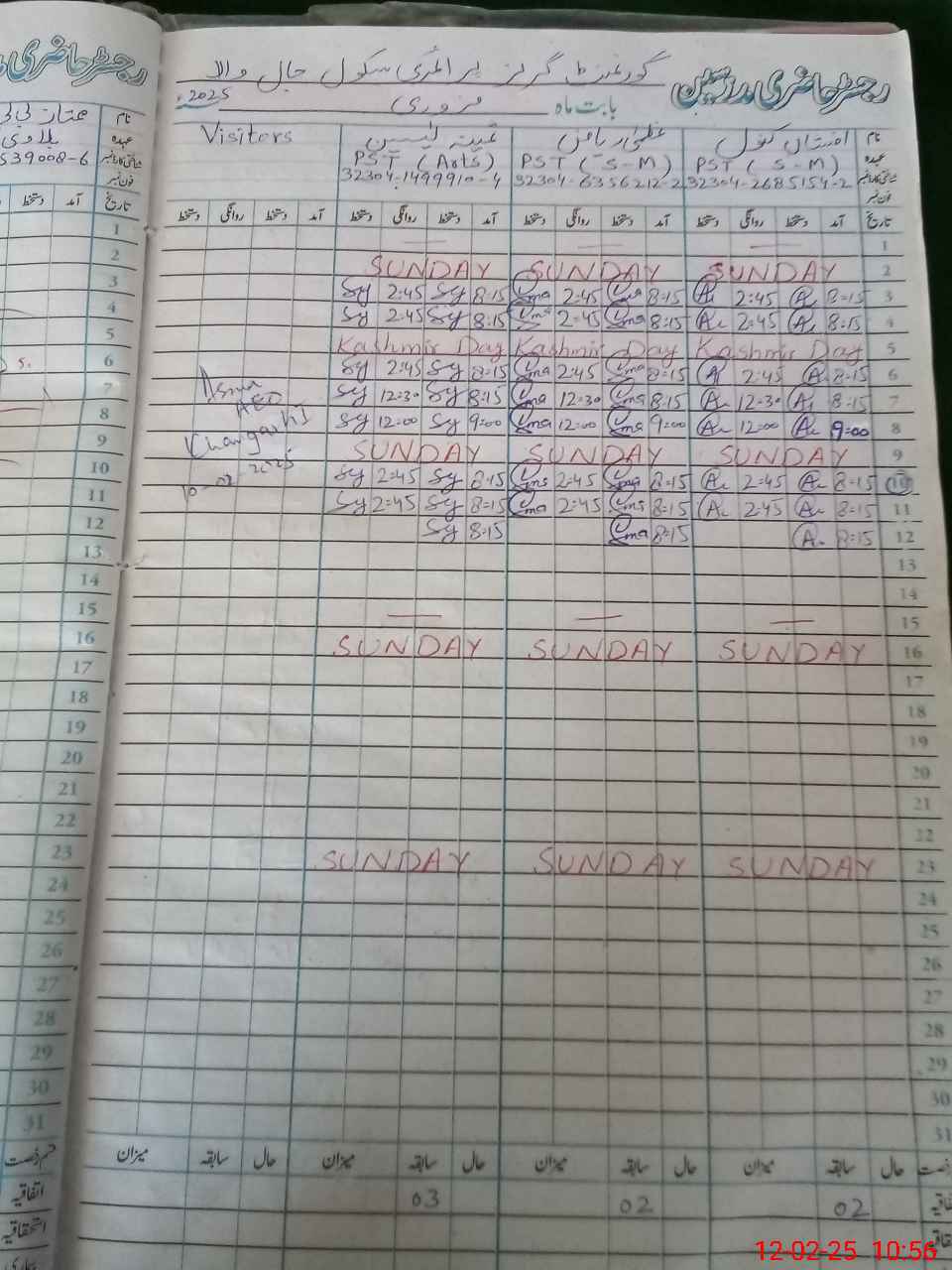 | Name: UZ**** RI**** Designation: (School Headmaster's/Headmistress's) PST Phone/Cell Number: 03**** |