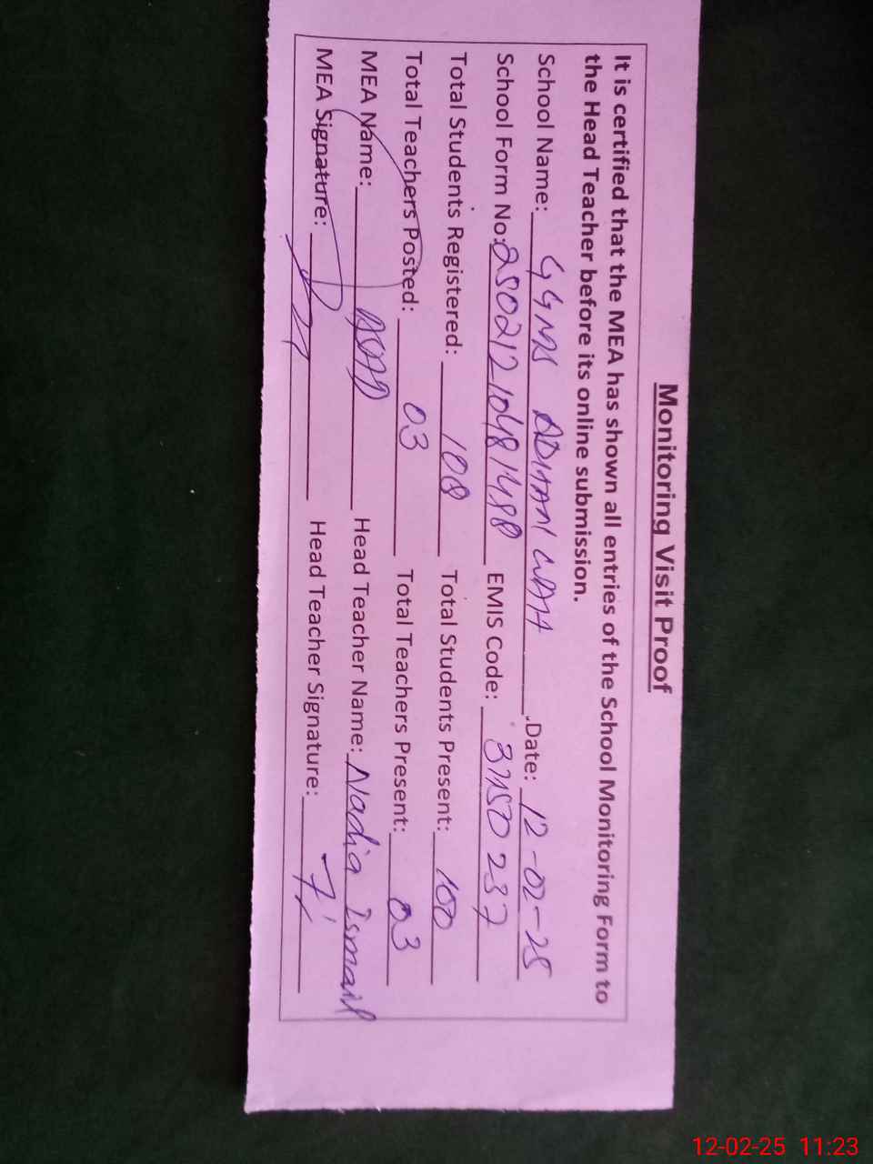 | EMIS Code: 31150237 | Name of School: GMPS ADHAN WAH | |||