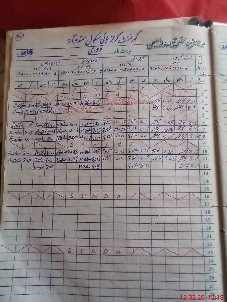 | CNIC | Full Name | Designation | R/C | Absence During Last Calender Month |