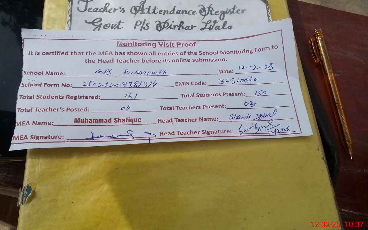 | EMIS Code: 32310090 | Name of School: GPS PIRHAR WALA | |||