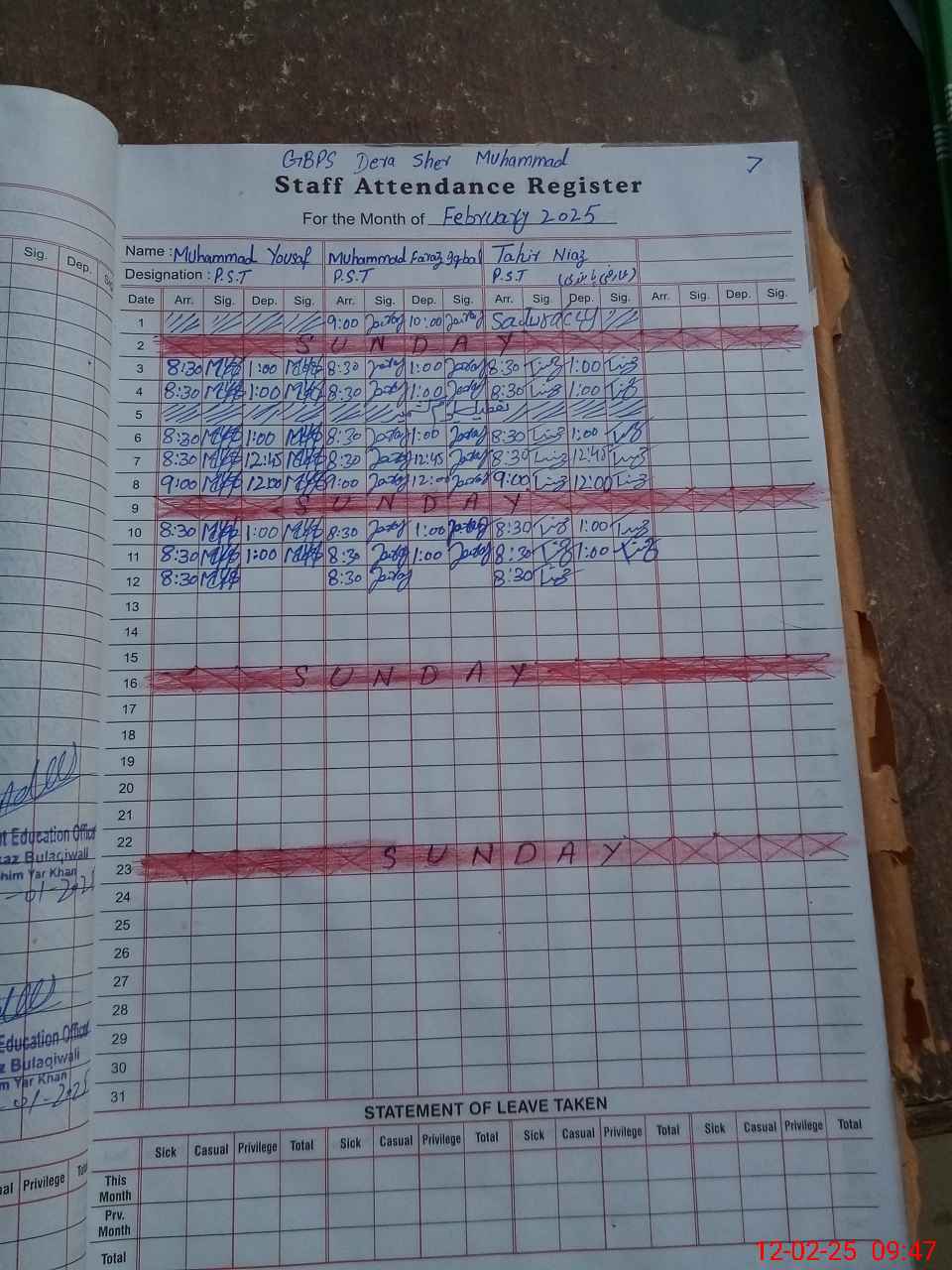 | EMIS Code: 31331071 | Name of School: GPS DERA SHER MUHAMMAD | |||