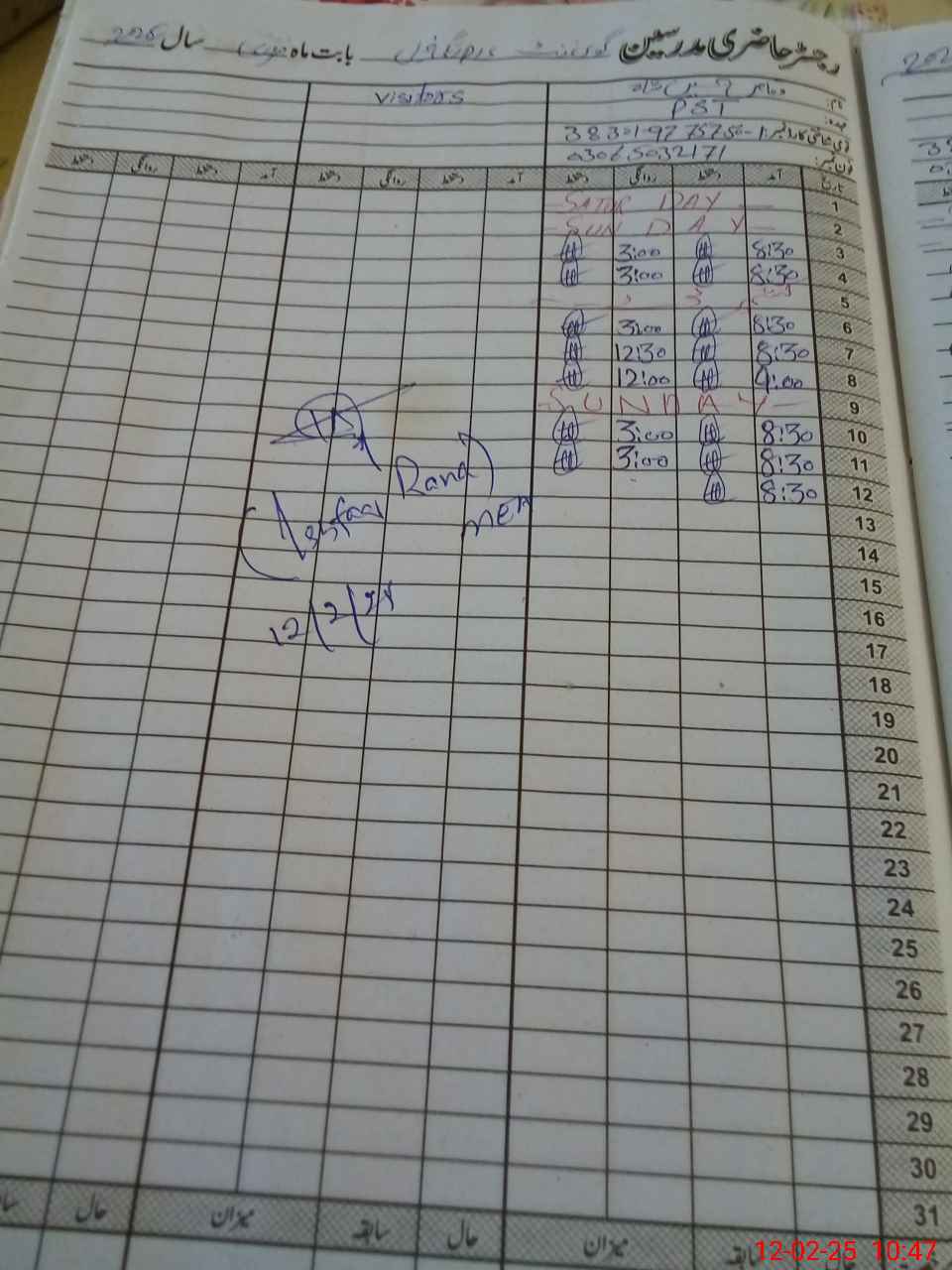 | CNIC | Full Name | Designation | R/C | Absence During Last Calender Month |