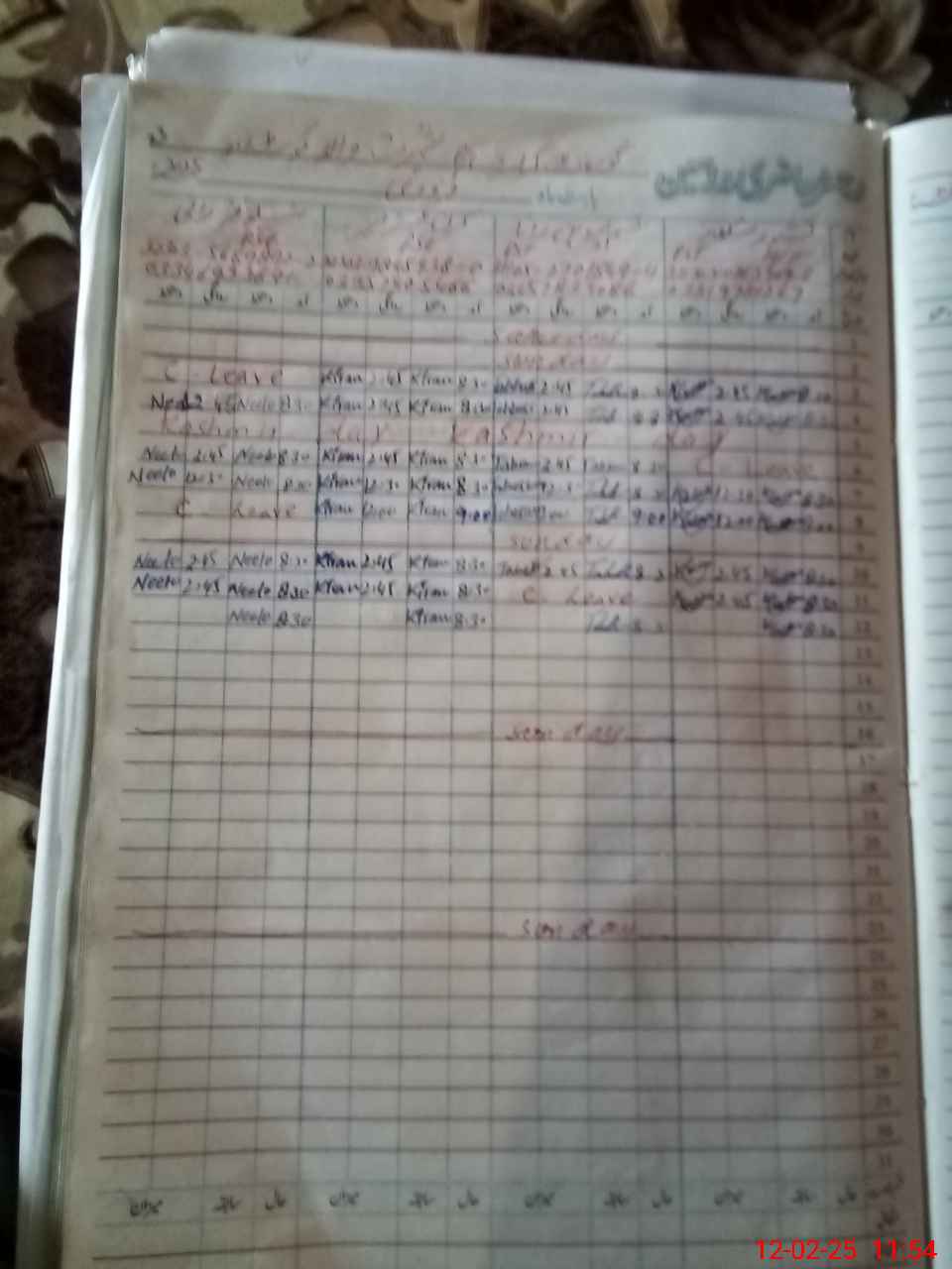| CNIC | Full Name | Designation | R/C | Absence During Last Calender Month |