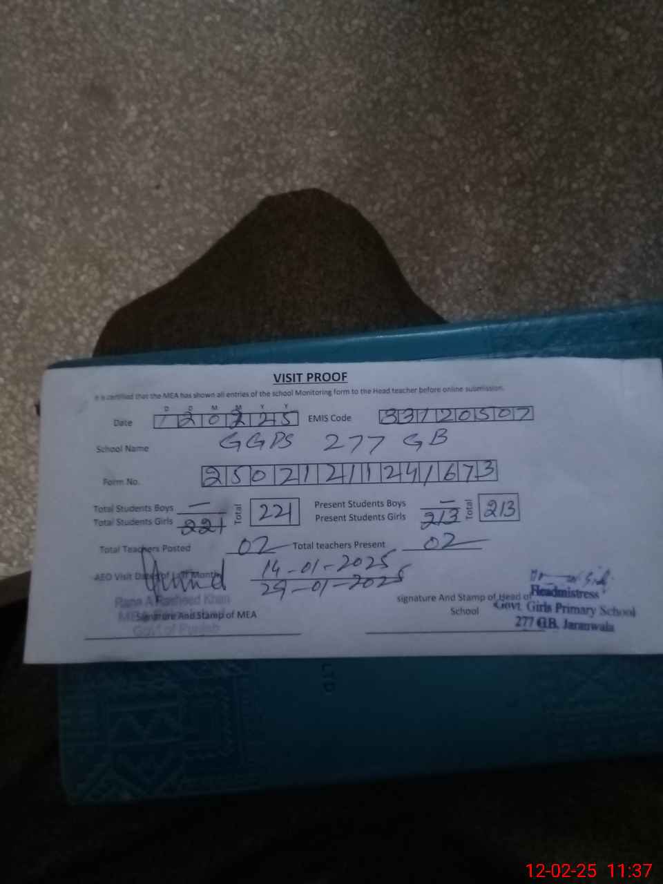| EMIS Code: 33120507 | Name of School: GGPS CHAK 277 GB SATIANA | |||