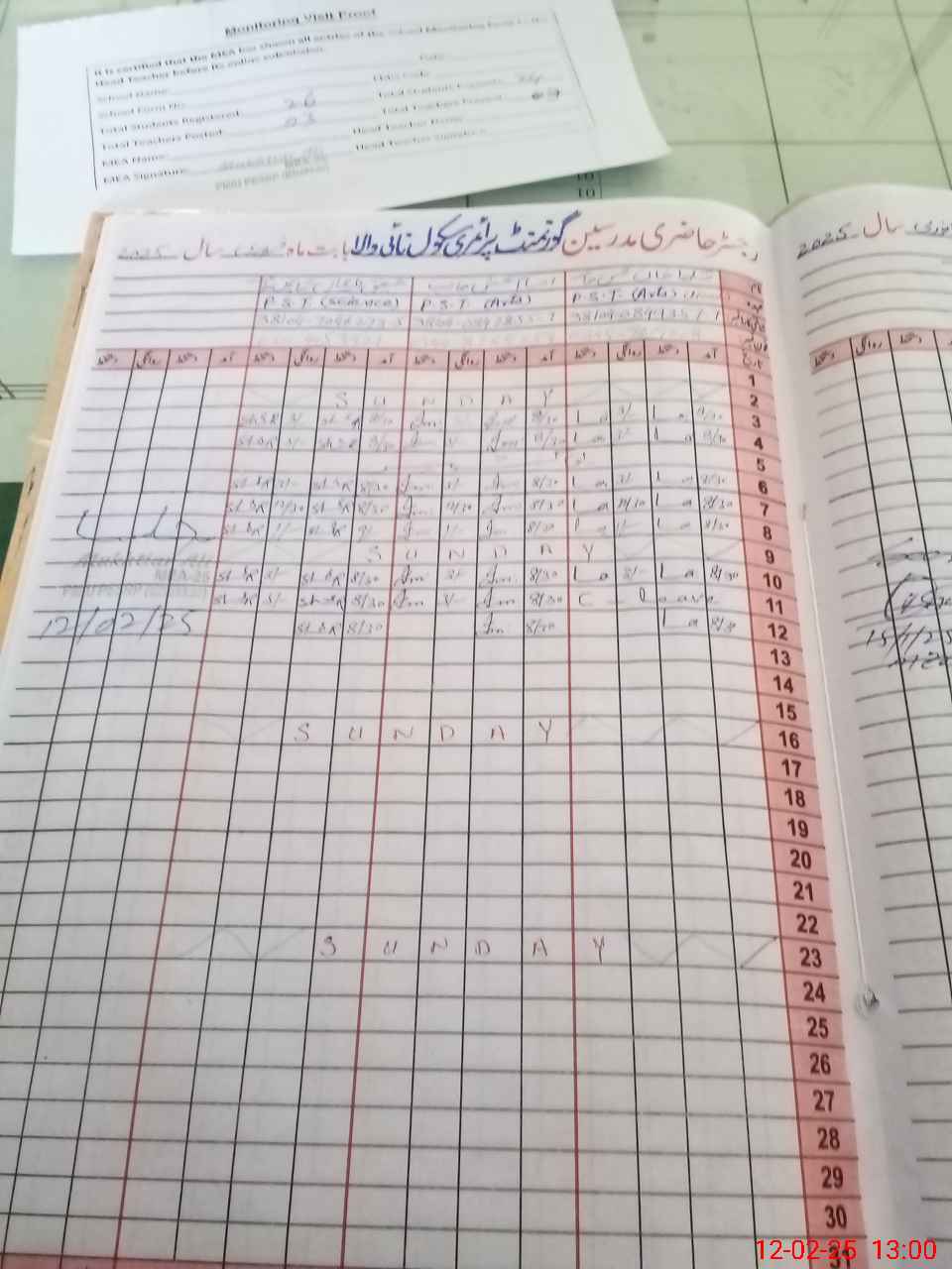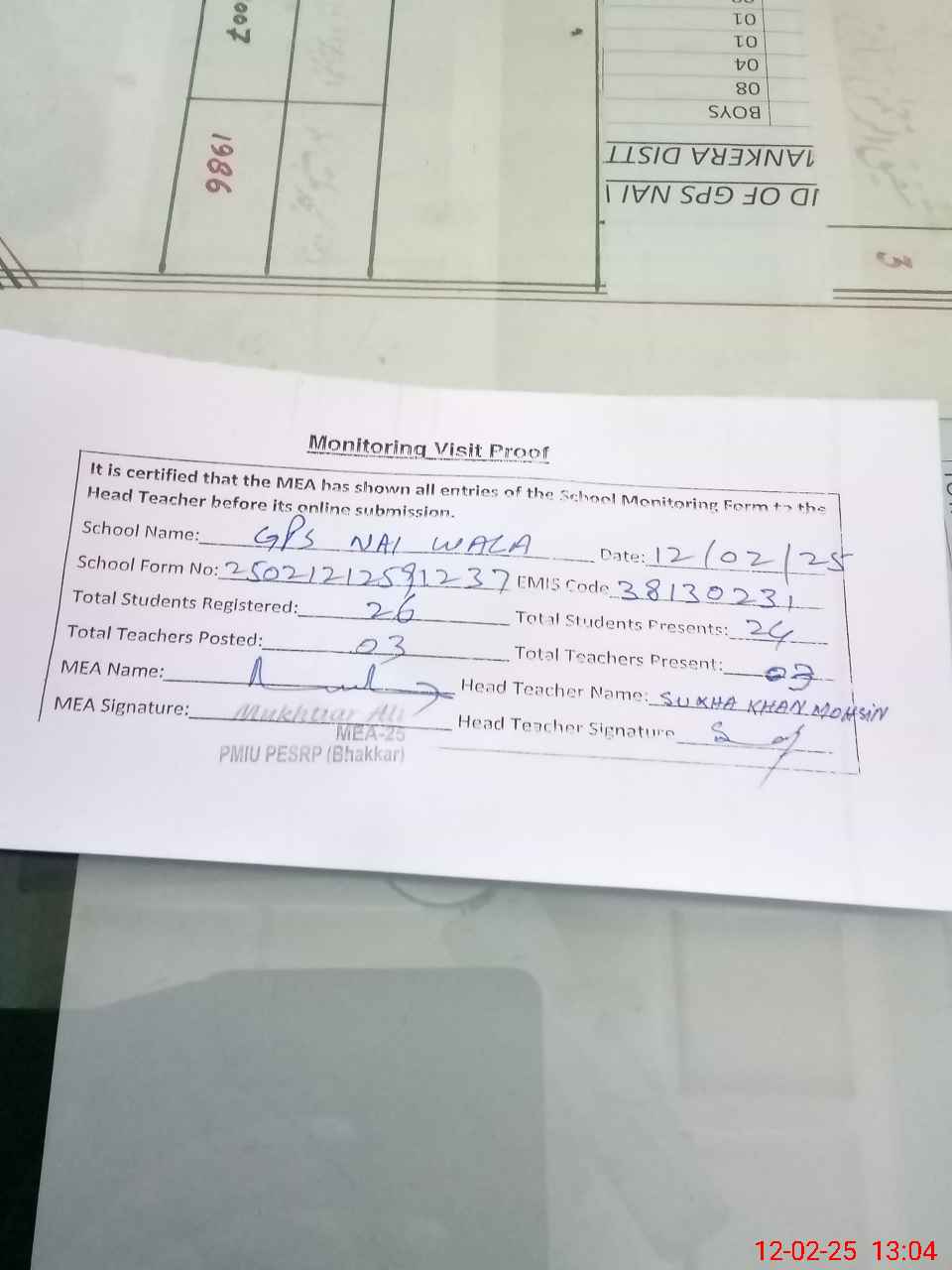 | Attendance Register | Head Teacher | MEA with School | Visit Proof |