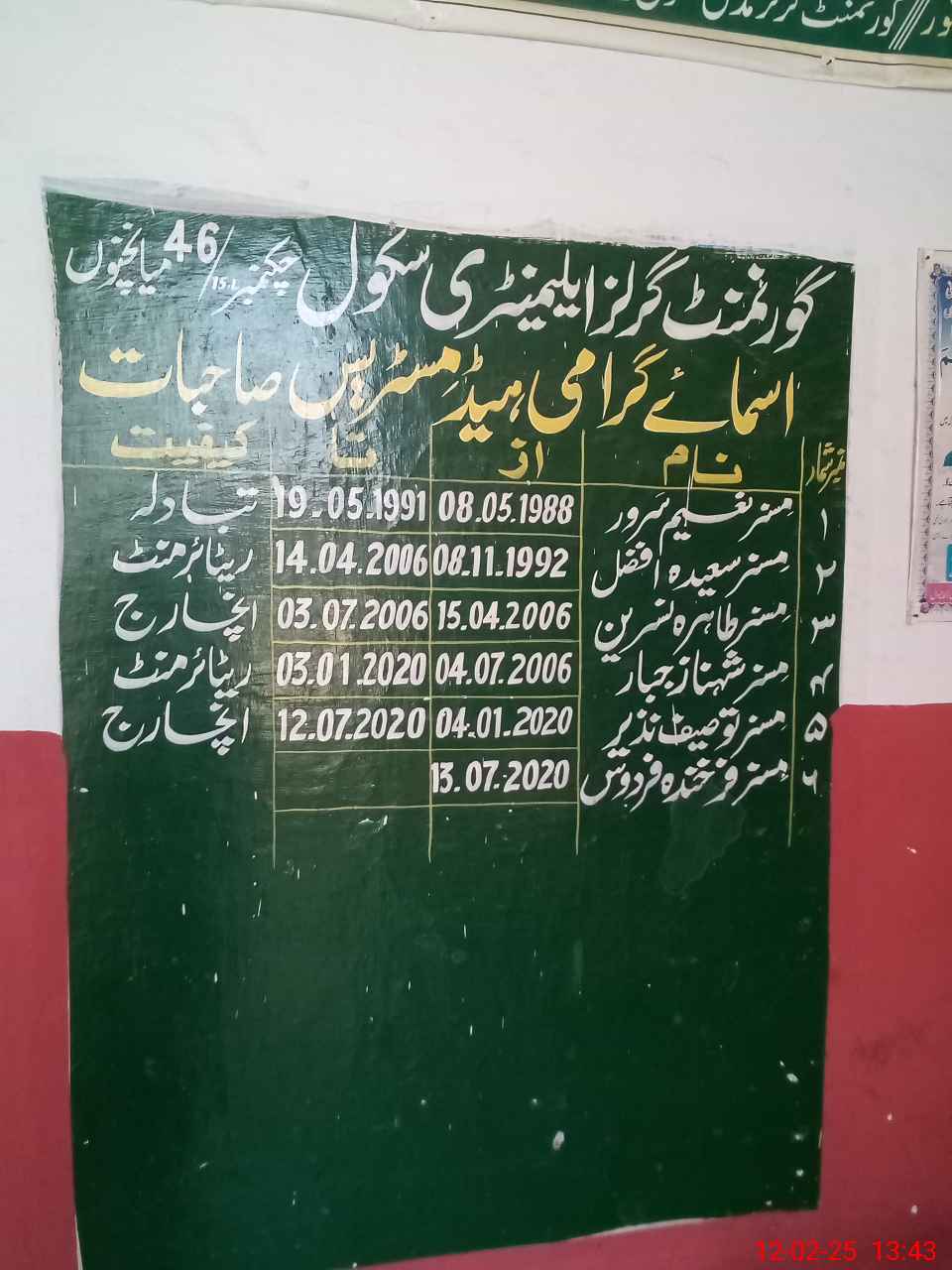 | EMIS Code: 36430105 | Name of School: GGES 46/15-L, MIAN CHANNU | |||