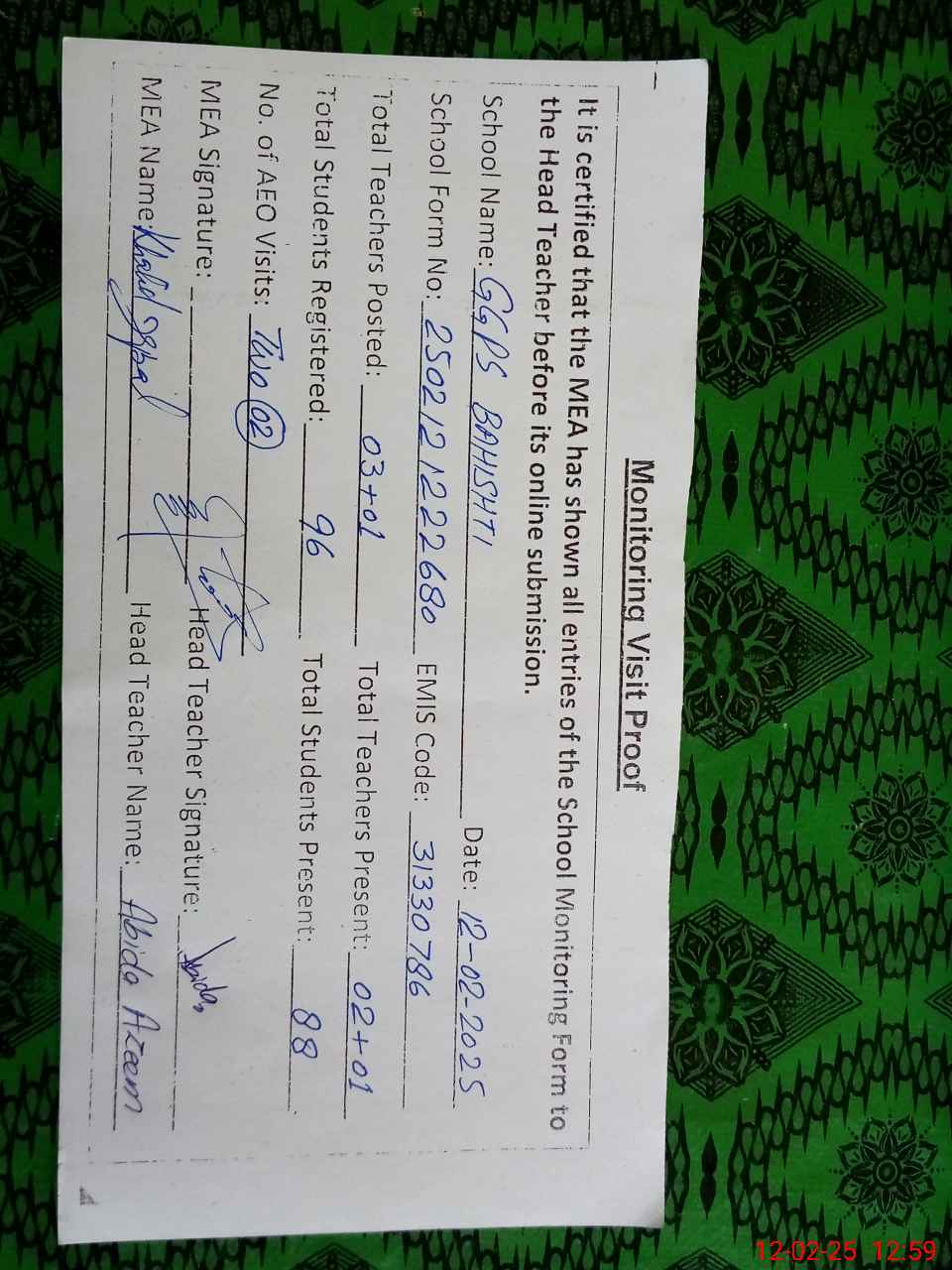| EMIS Code: 31330786 | Name of School: GGPS BAHISHTI | |||