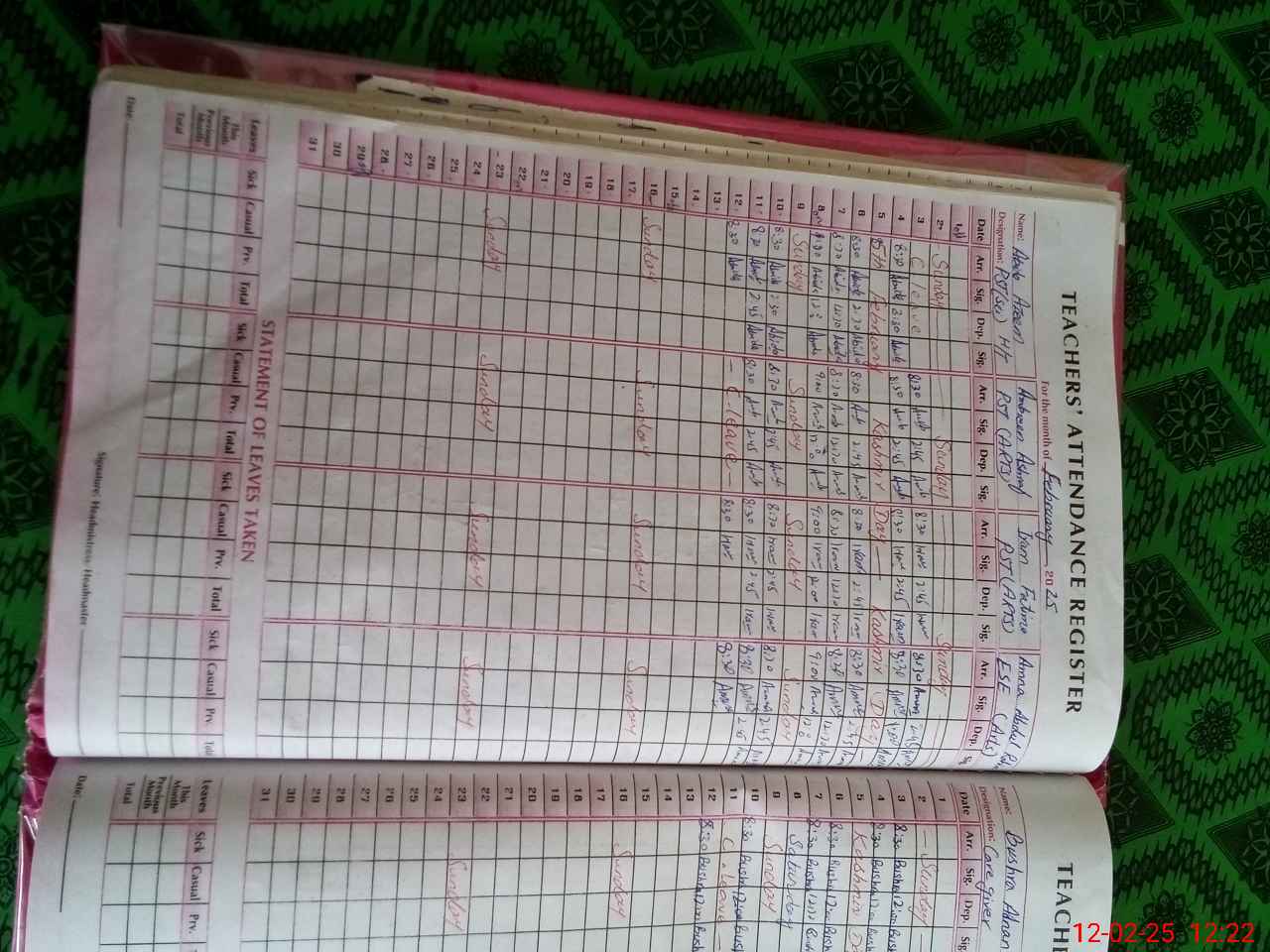 | Remarks (Use Separate Page if Required): Class verification is not updated on mea tab as per sis and teachers attendance not updated on sis today and two classes are sitting in veranda | |||||