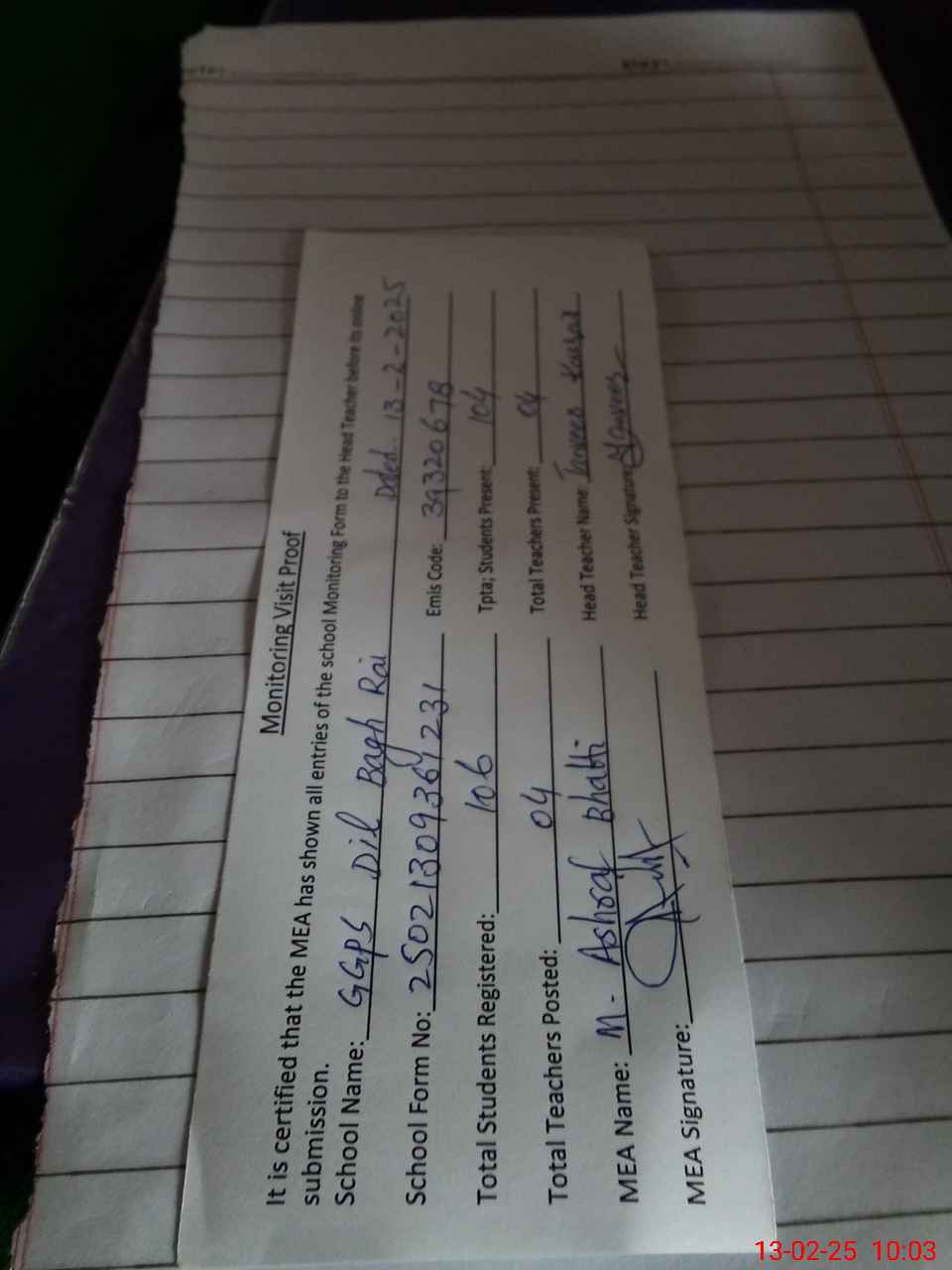 | EMIS Code: 39320678 | Name of School: GGPS DIL BAGH RAI | |||