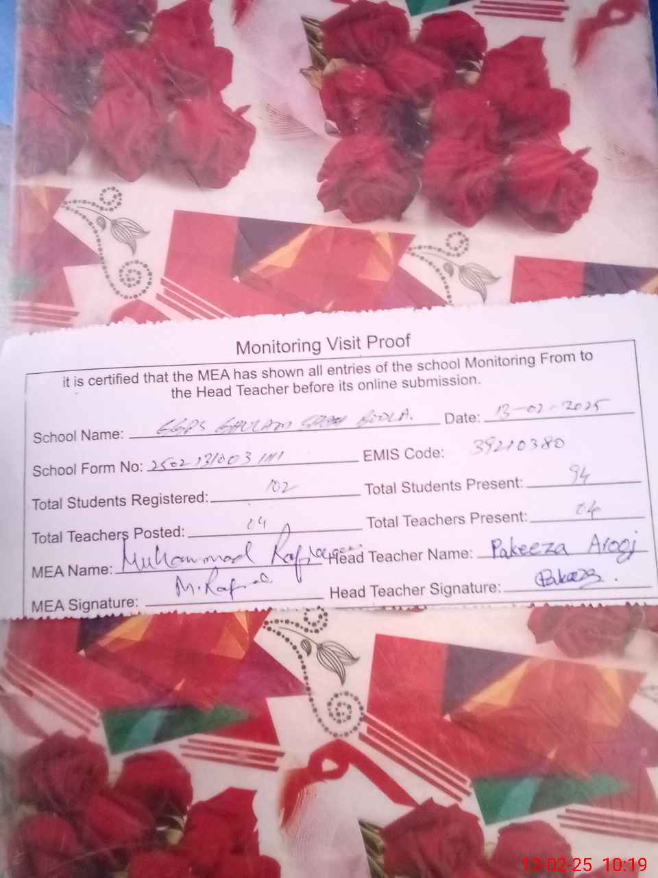 | EMIS Code: 39210380 | Name of School: GGPS GHULAM SHAH BOUDLA | |||