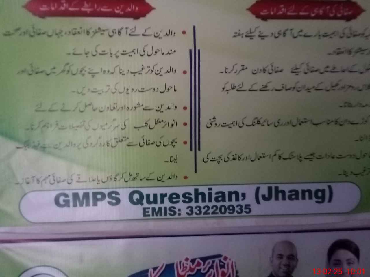 | EMIS Code: 33220935 | Name of School: GMPS QURESHIAN | |||