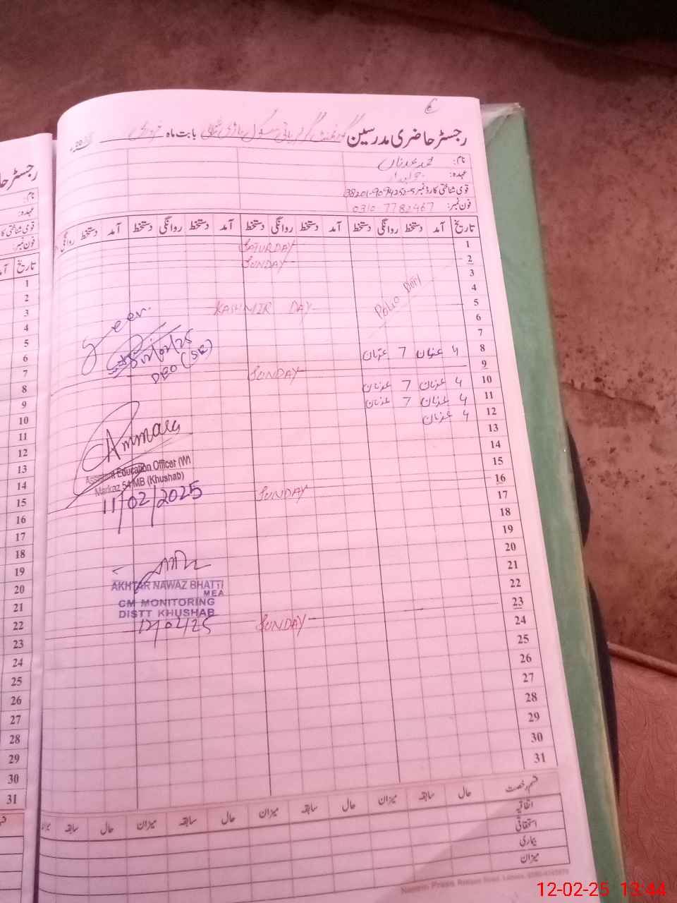 | Name: Gh**** Pe**** Designation: (School Headmaster's/Headmistress's) SST Phone/Cell Number: 03**** |