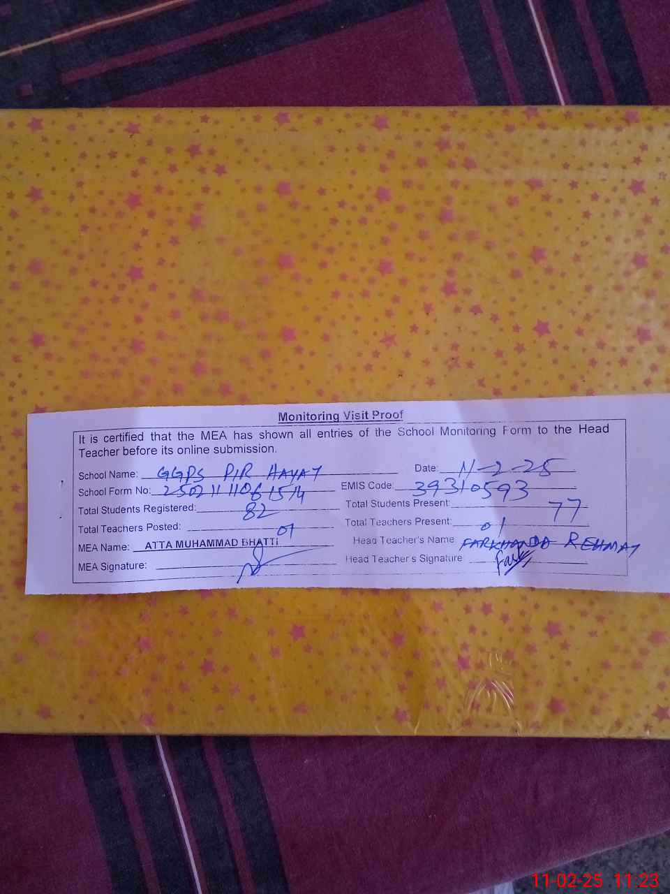 | EMIS Code: 39310593 | Name of School: GGPS PIR HAYAT | |||