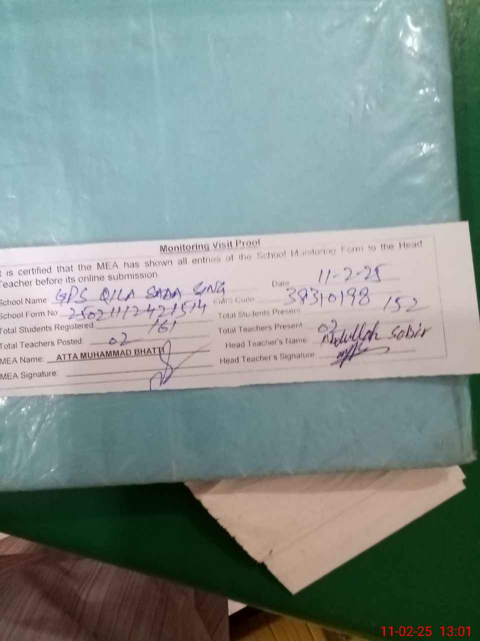 | EMIS Code: 39310198 | Name of School: GPS QILA SADA SINGH | |||