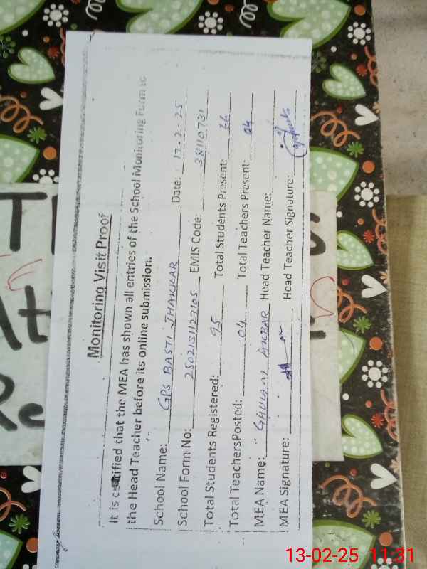 | Certified that this School was Inspected by the Undersigned MEA/DMO Today and the Information Stated Above is as Per Record. | |||||
