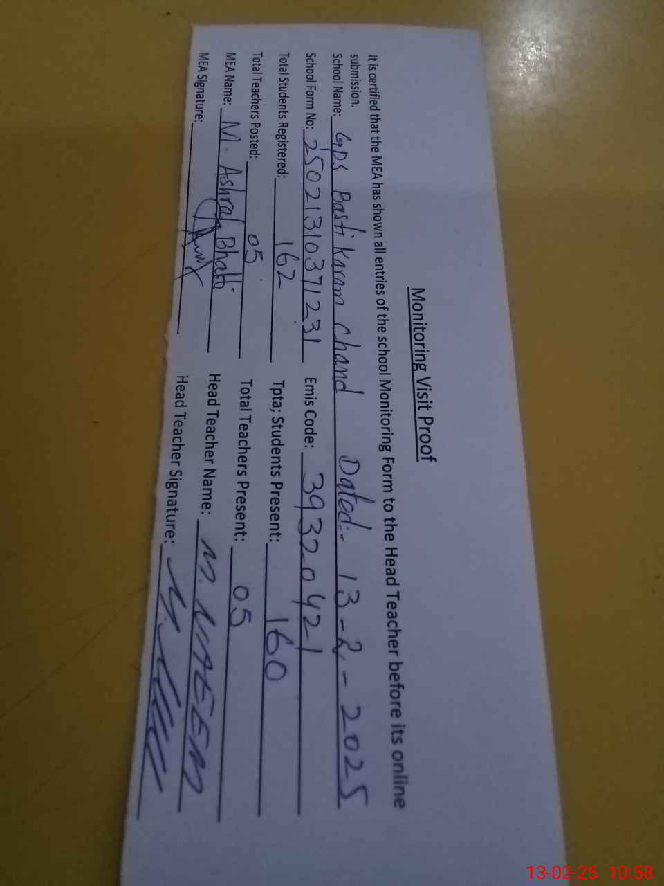 | EMIS Code: 39320421 | Name of School: GPS BASTI KARAM CHAND | |||