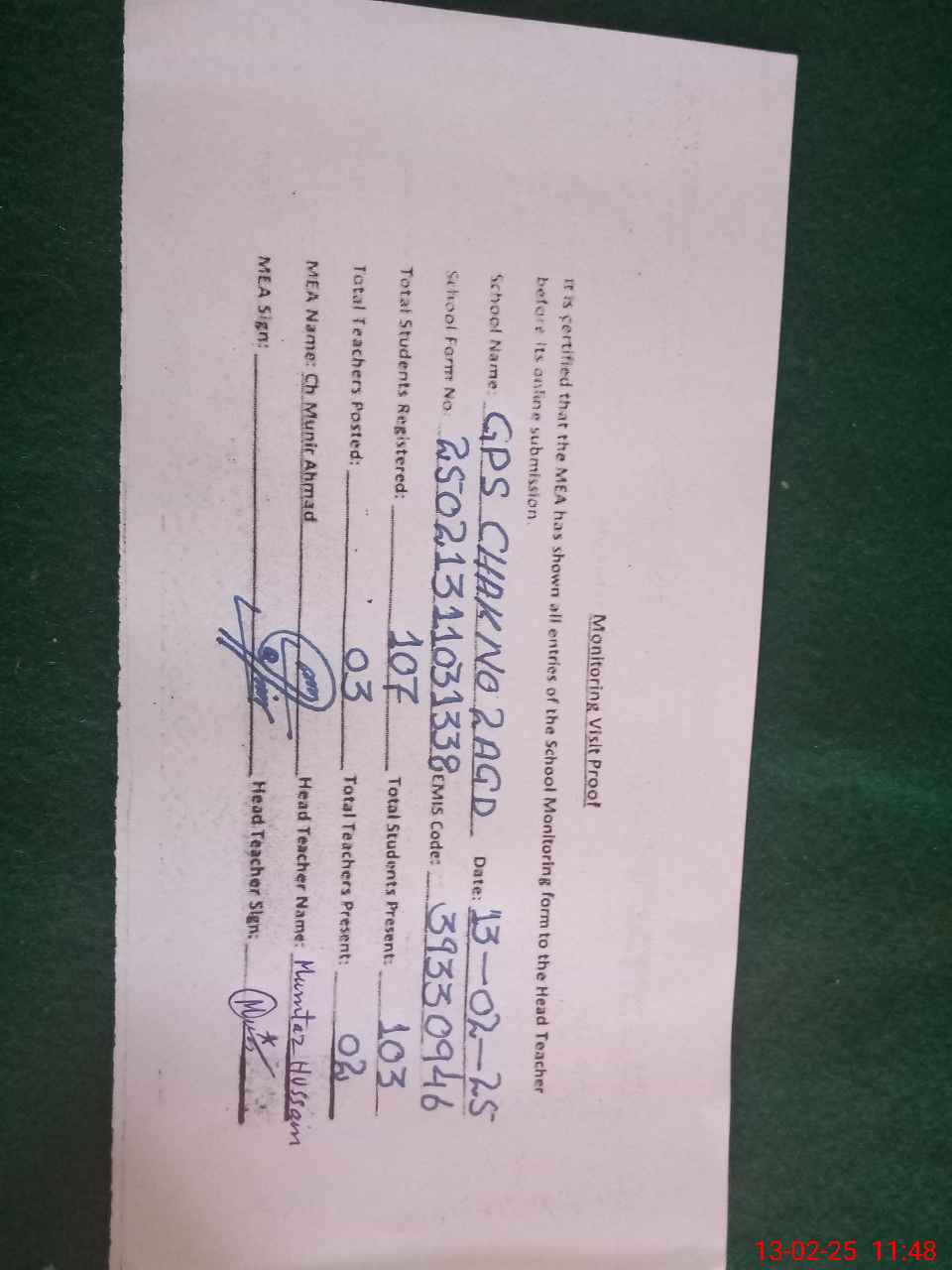 | EMIS Code: 39330946 | Name of School: GPS CHAK 2-A/GD | |||