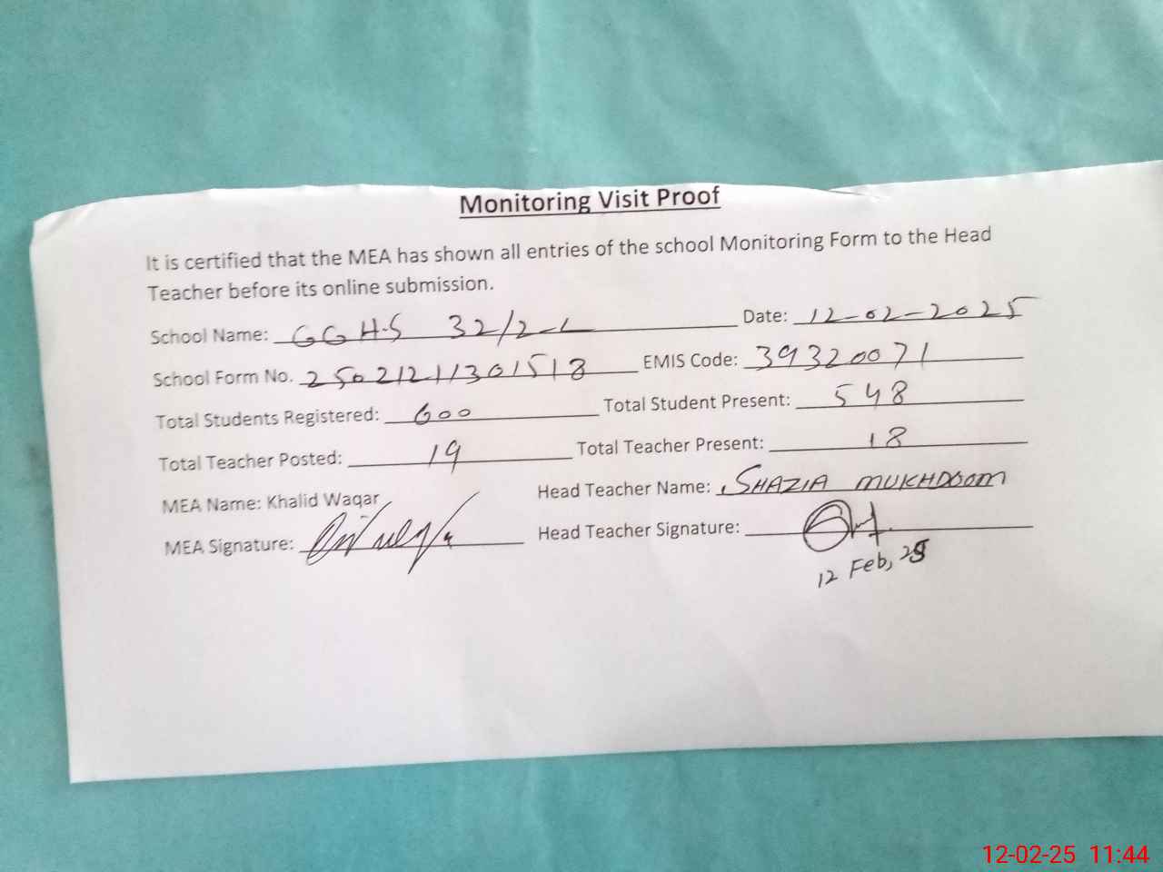 | EMIS Code: 39320071 | Name of School: GGHS CHAK NO. 32/2-L | |||