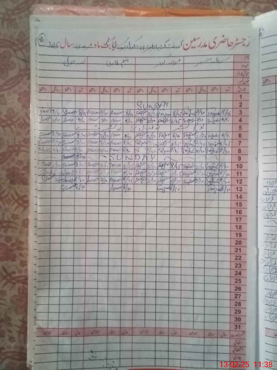 | CNIC | Full Name | Designation | R/C | Absence During Last Calender Month |