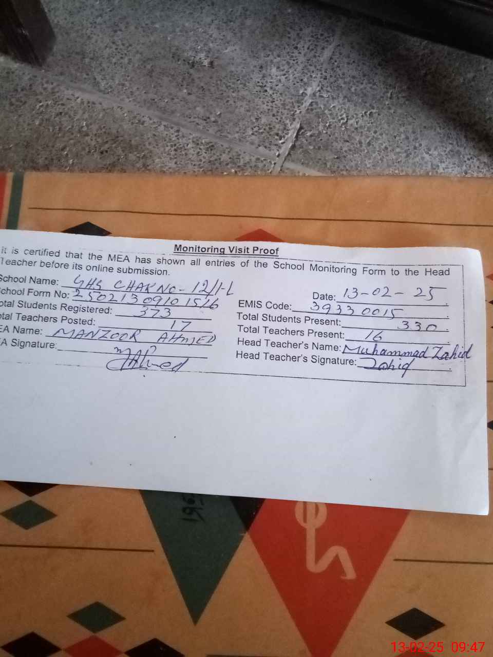 | Certified that this School was Inspected by the Undersigned MEA/DMO Today and the Information Stated Above is as Per Record. | |||||