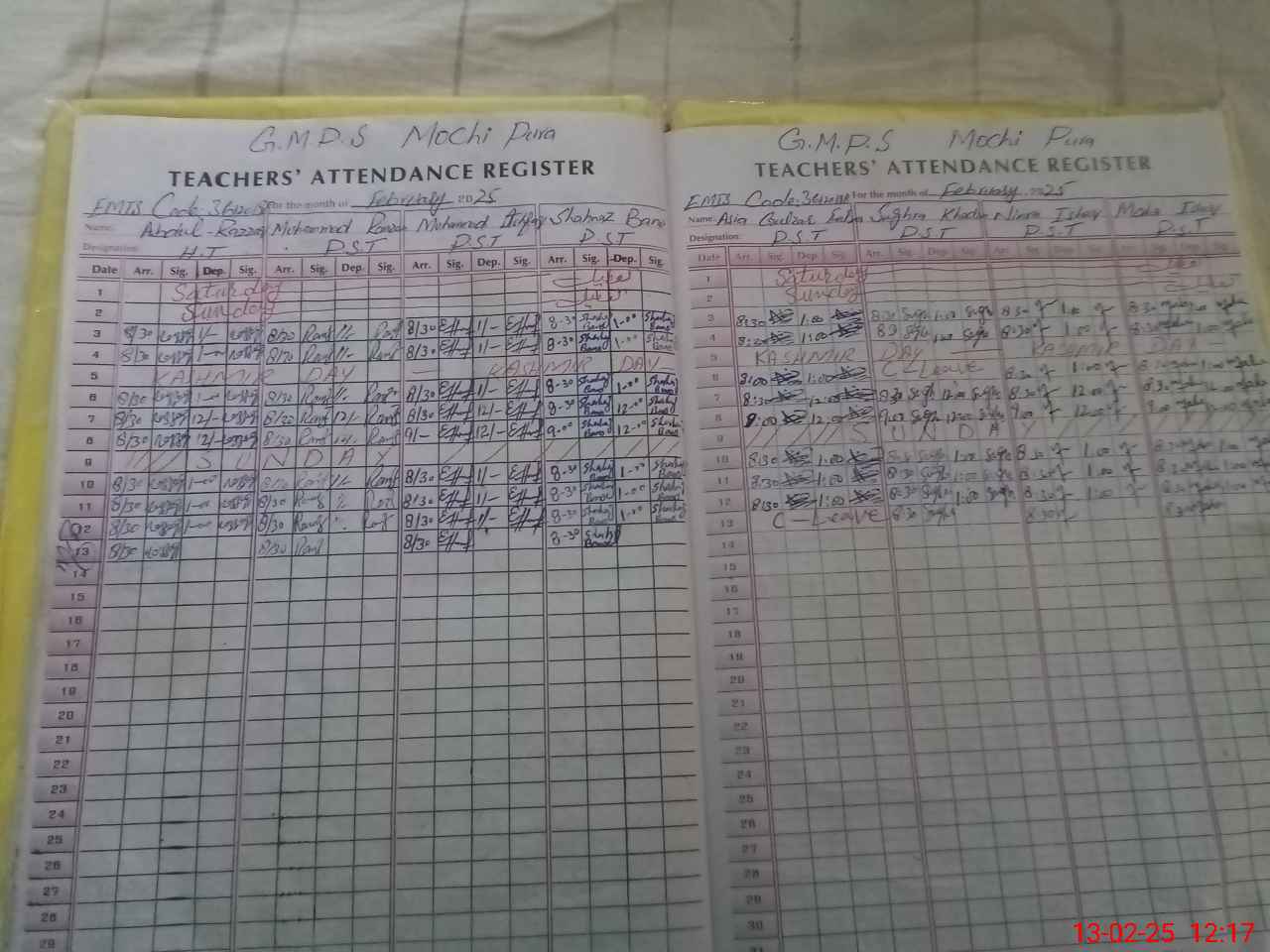 | CNIC | Full Name | Designation | R/C | Absence During Last Calender Month |