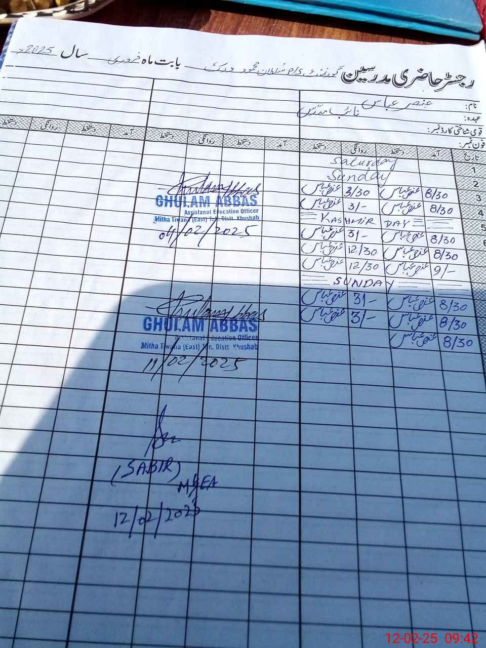| CNIC | Full Name | Designation | R/C | Absence During Last Calender Month |