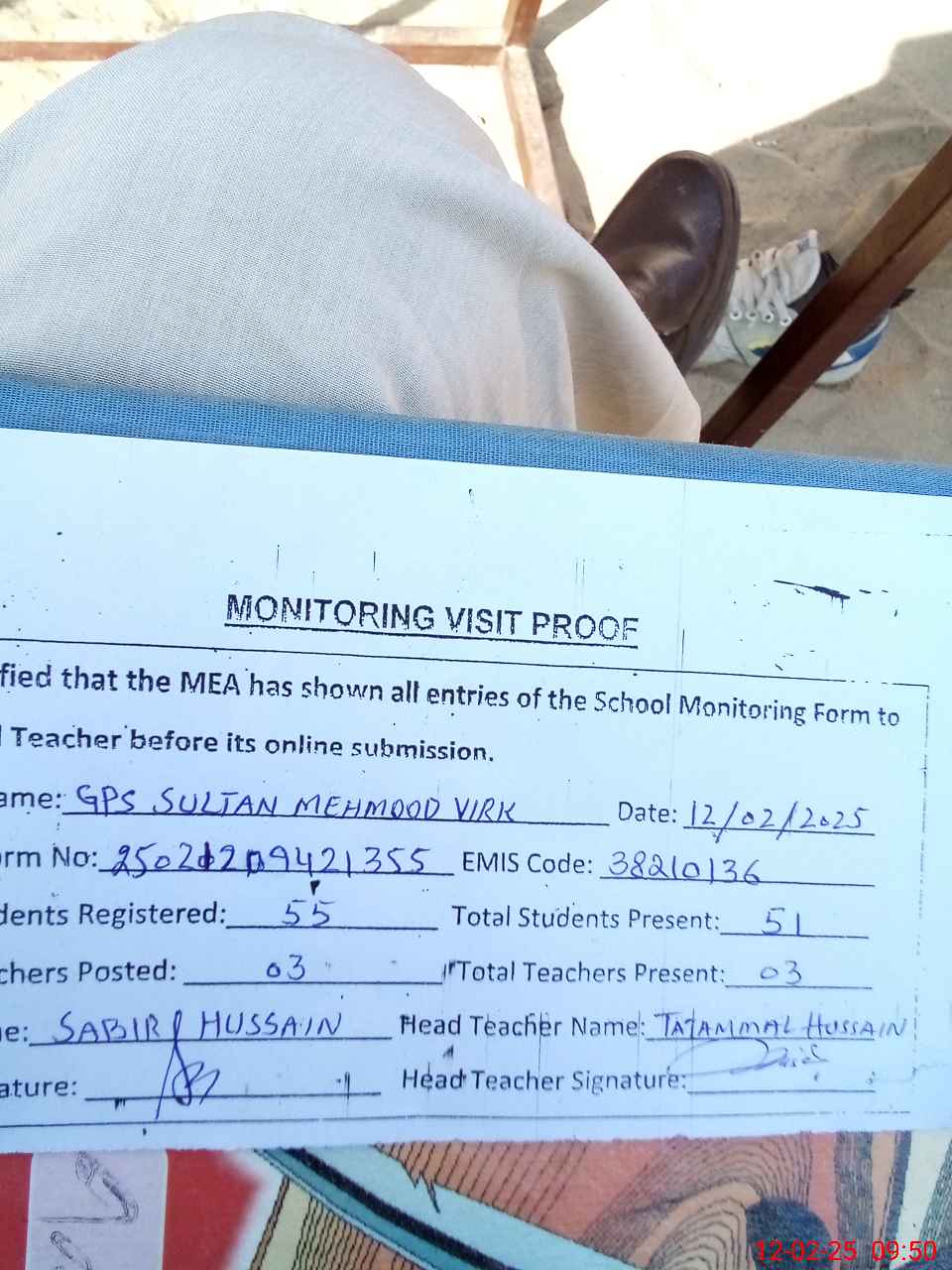| EMIS Code: 38210136 | Name of School: GPS SULTAN MEHMOOD VIRK | |||