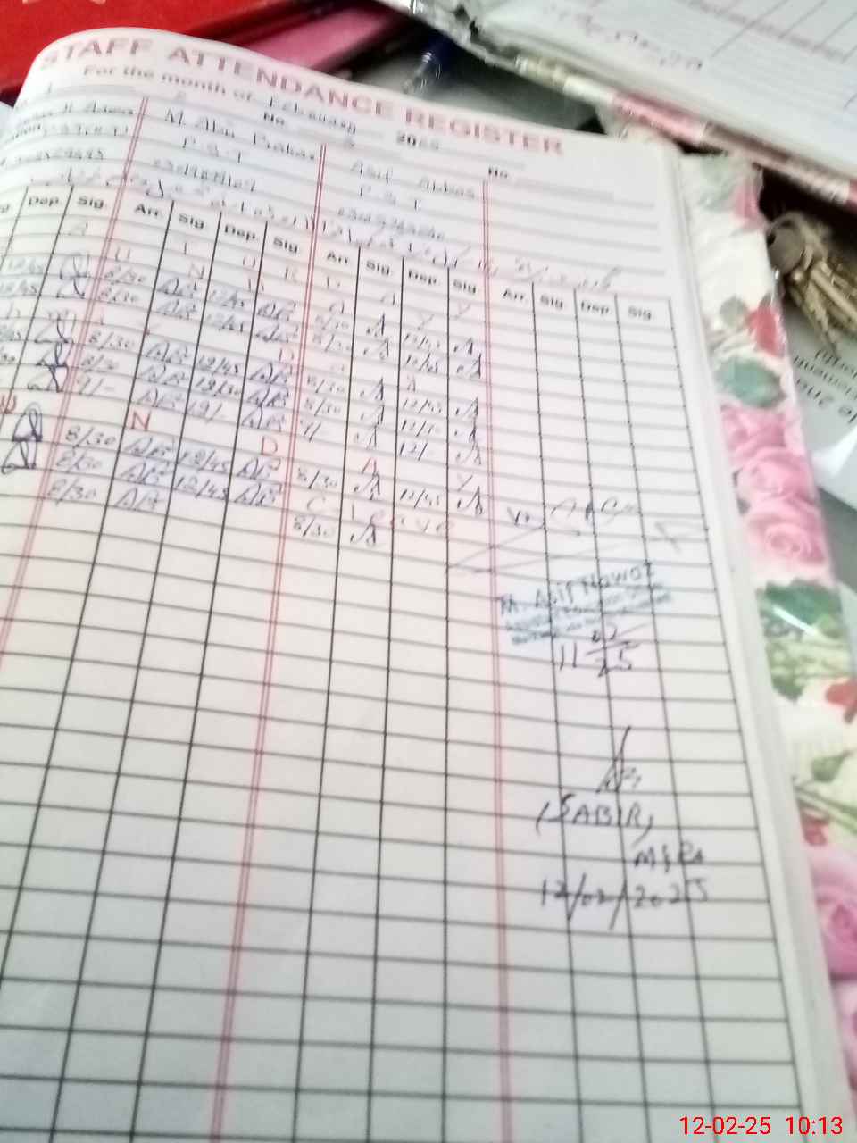 | CNIC | Full Name | Designation | R/C | Absence during last cal. month |