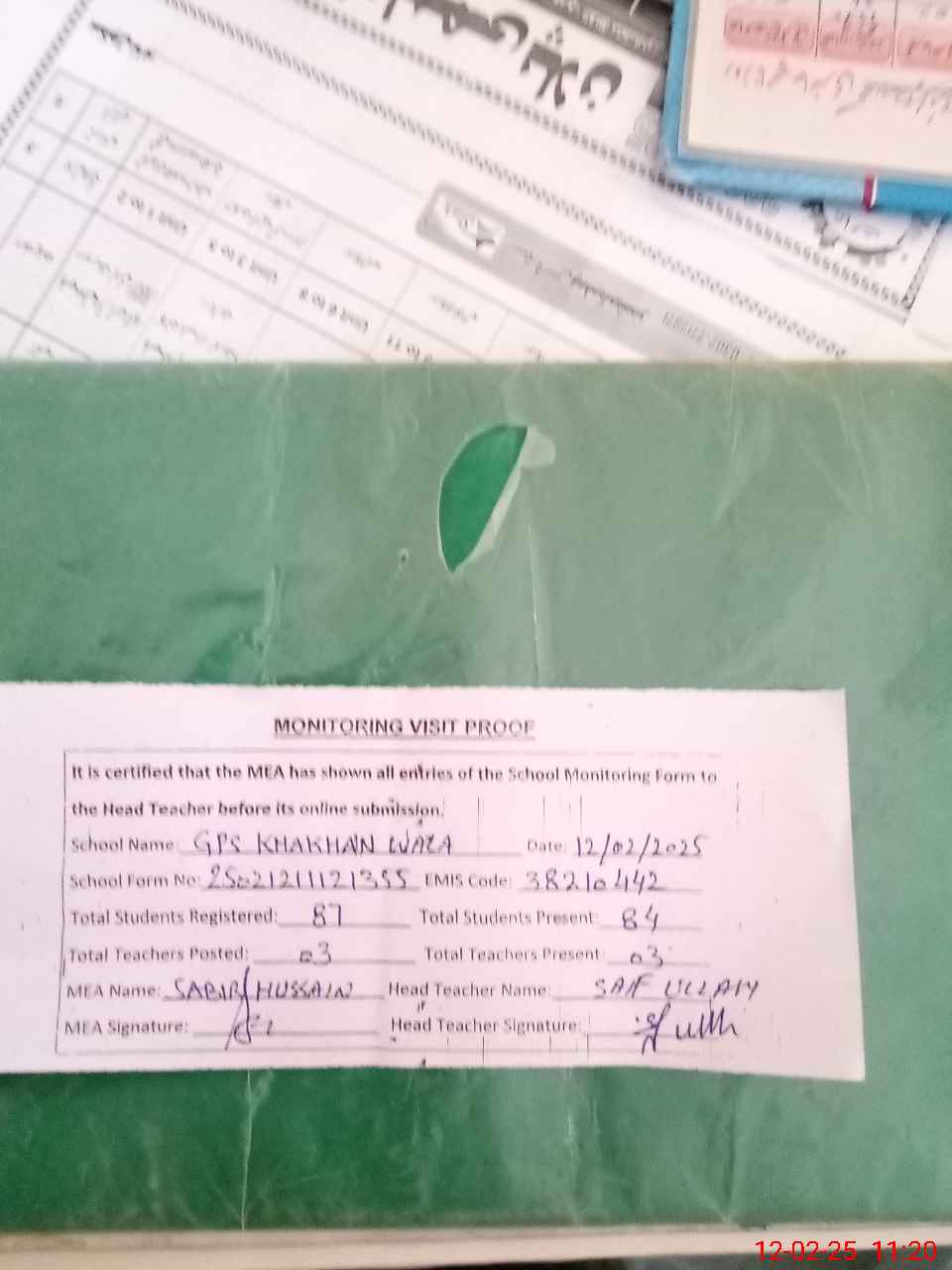 | EMIS Code: 38210442 | Name of School: GPS KHAKHAN WALA | |||