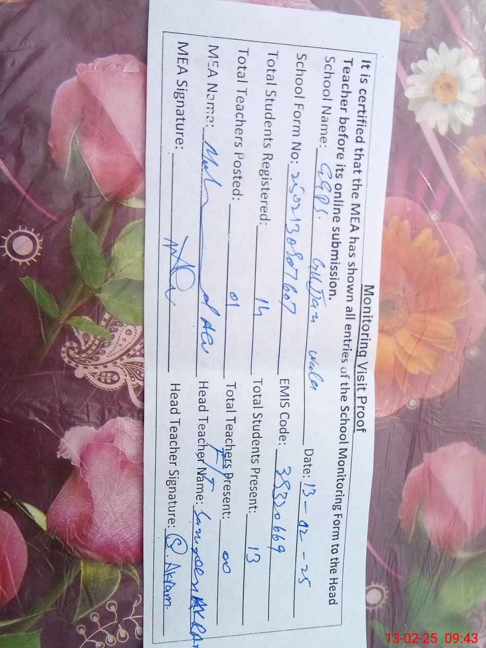 | EMIS Code: 39320669 | Name of School: GGPS GUJJAN WALA | |||