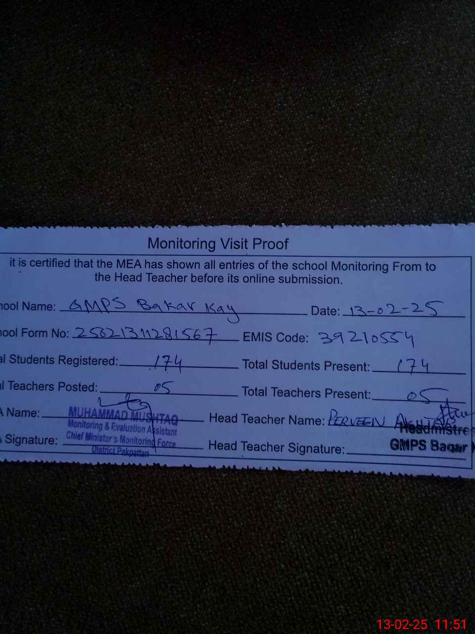 | EMIS Code: 39210554 | Name of School: GMPS BAKAR KAY | |||