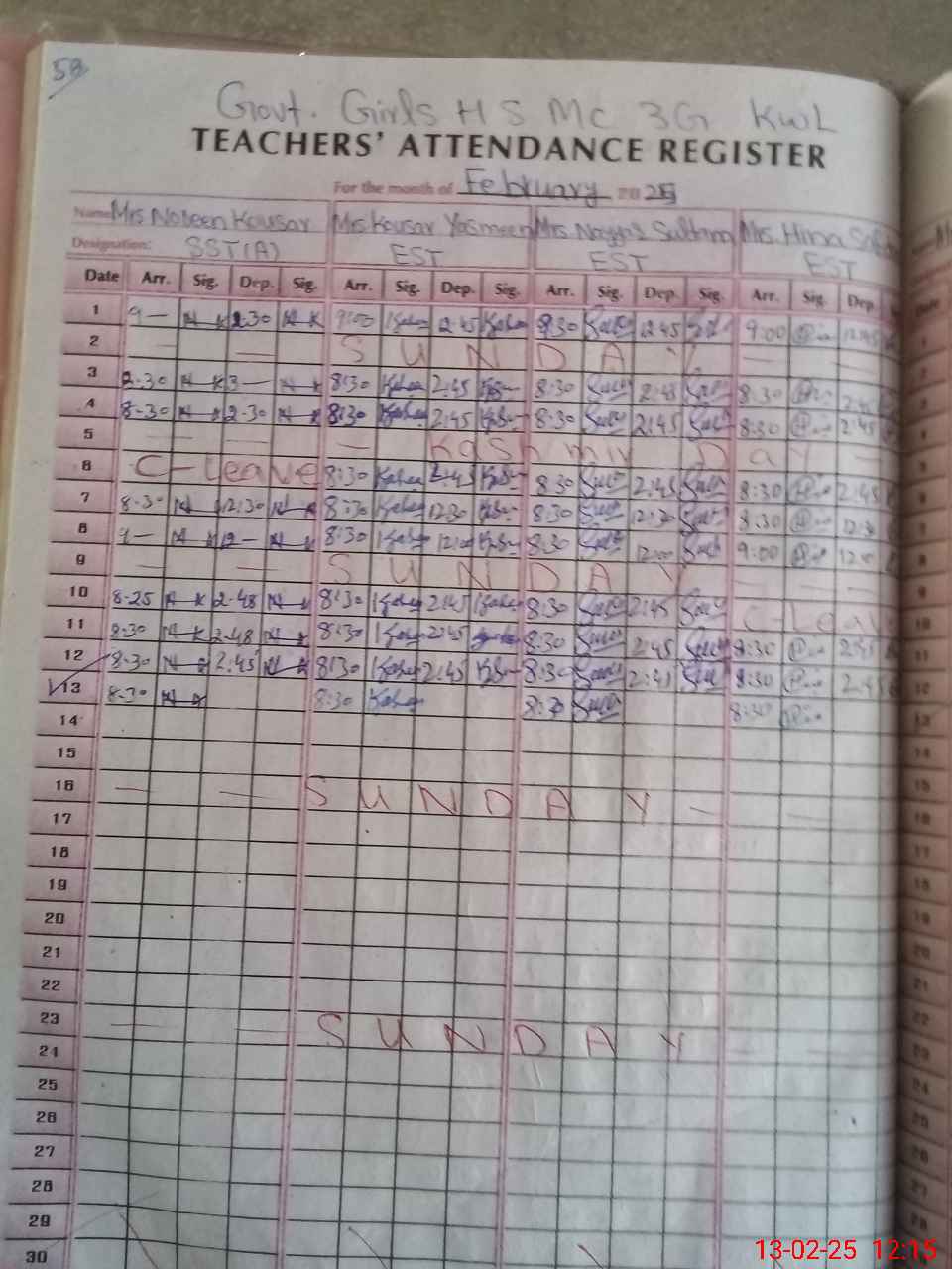 | Remarks (Use Separate Page if Required): 04 teachers adjusted on on temporary duty in school | |||||